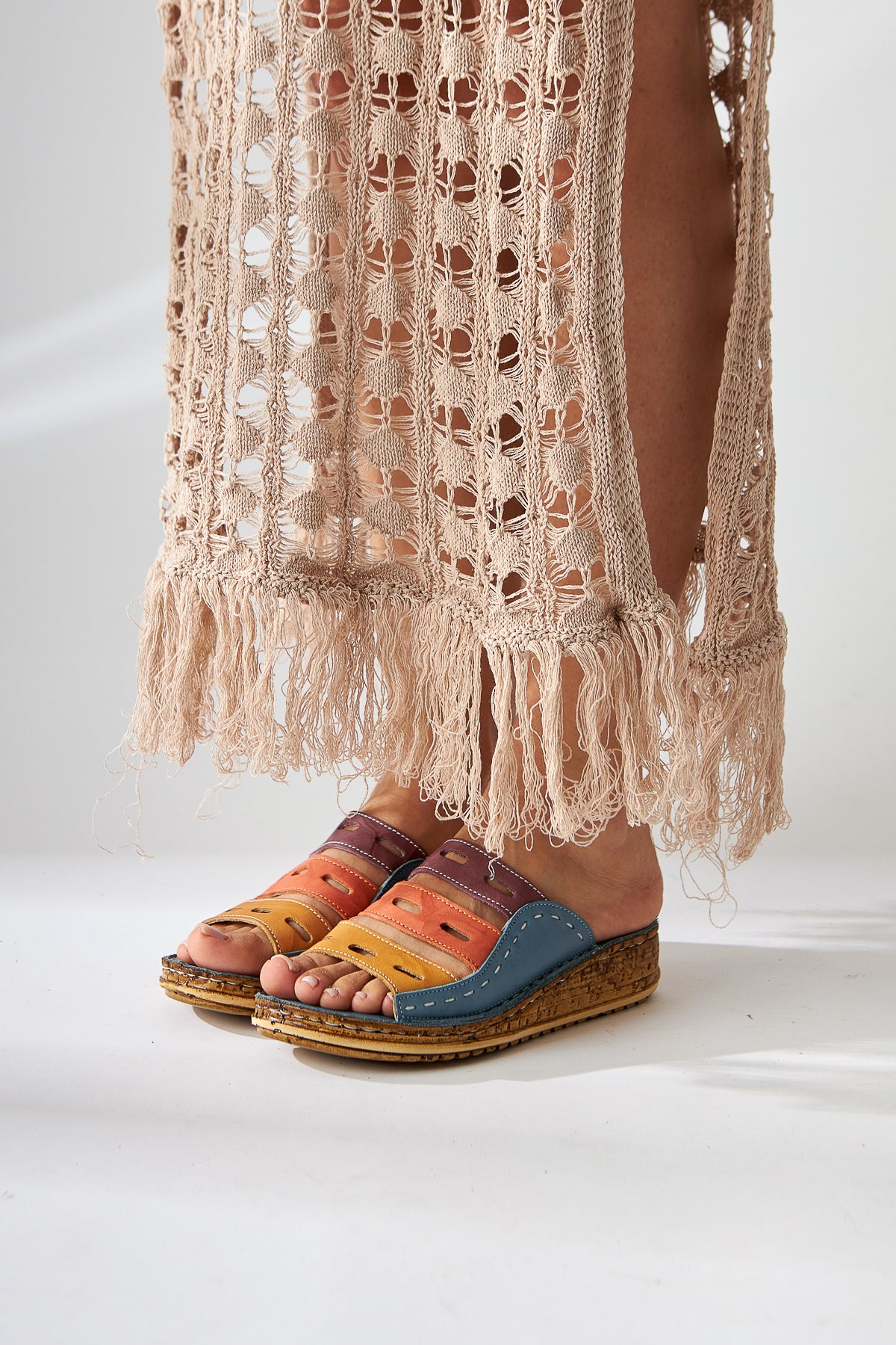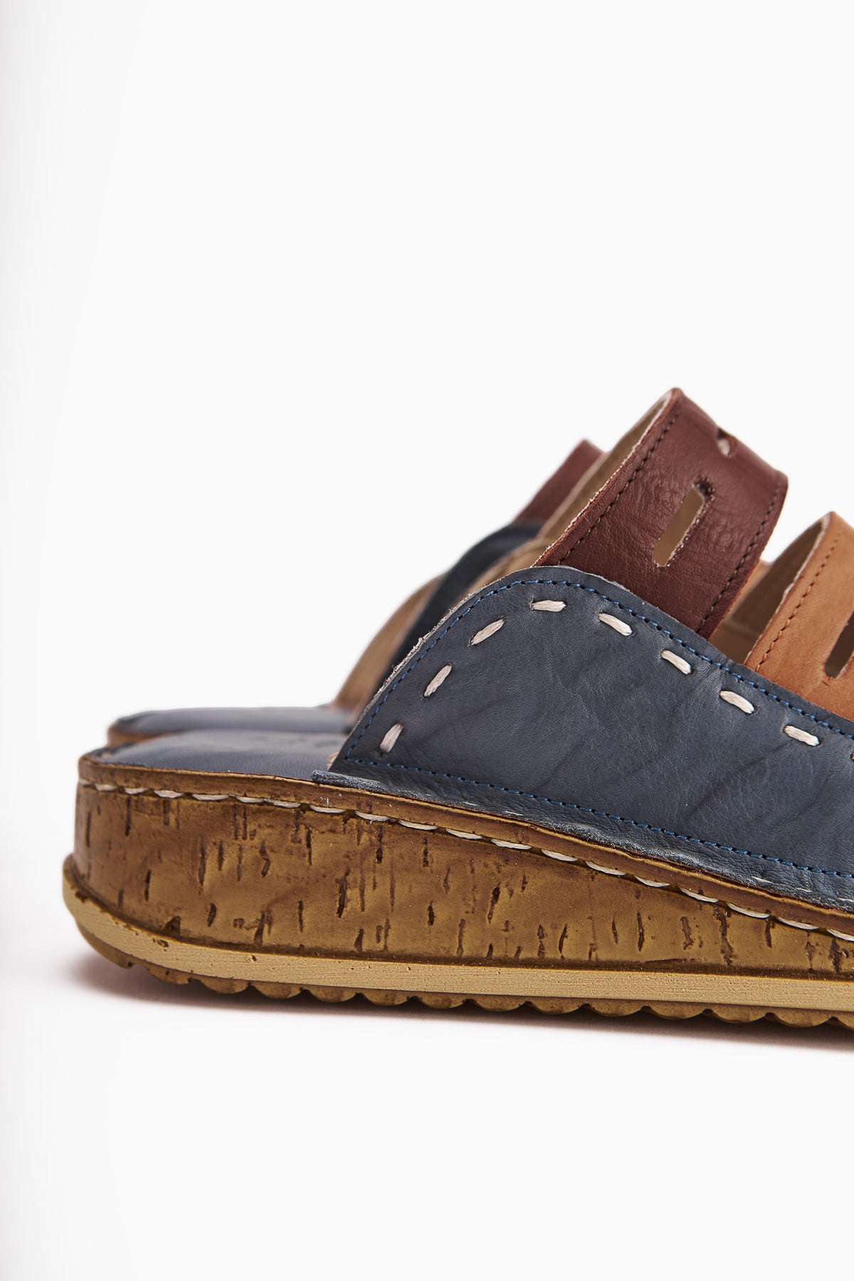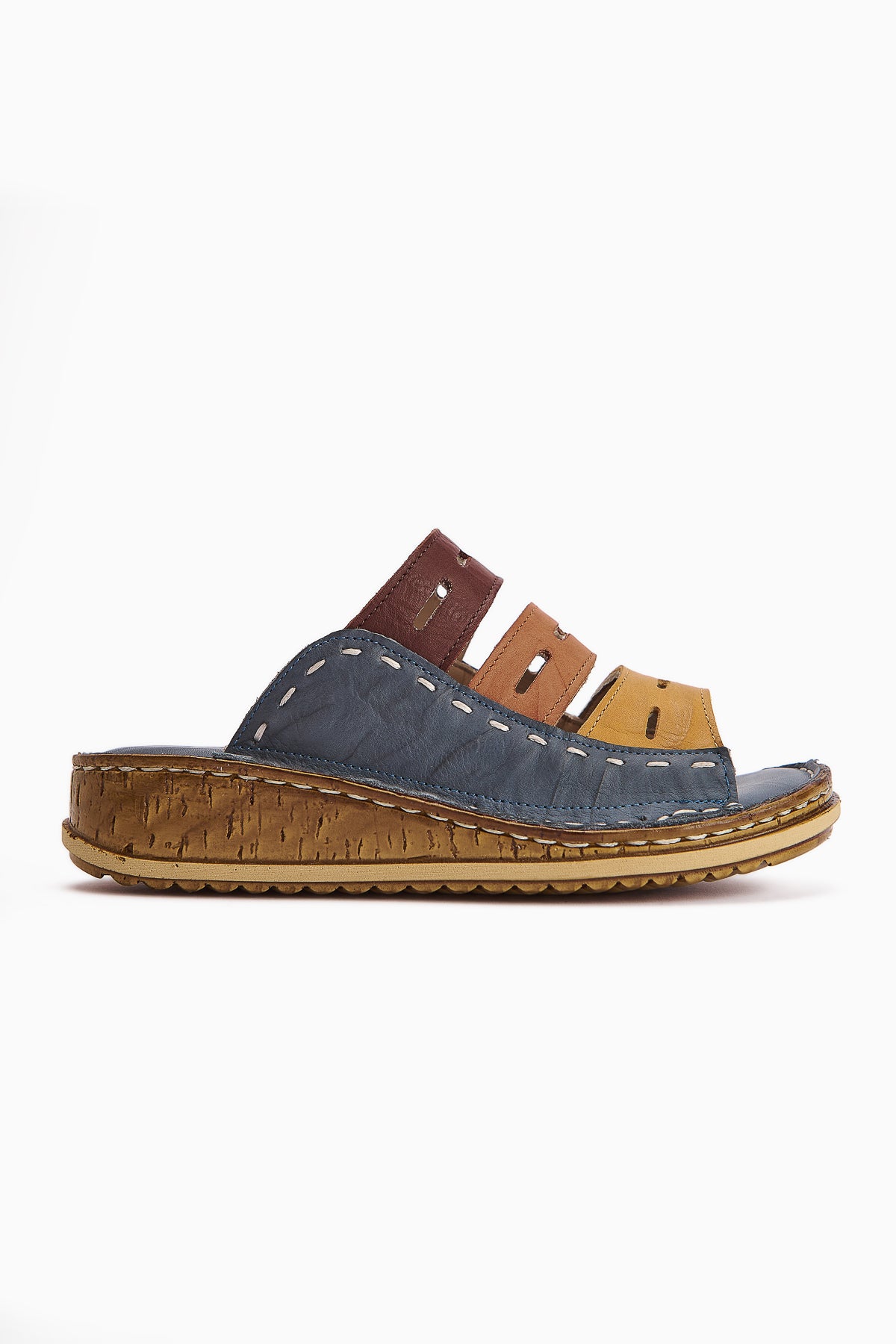 Hakiki Deri Joelle Kot-Mavi Mor Portakal Hardal Comfort Lazer Kesim Terlik