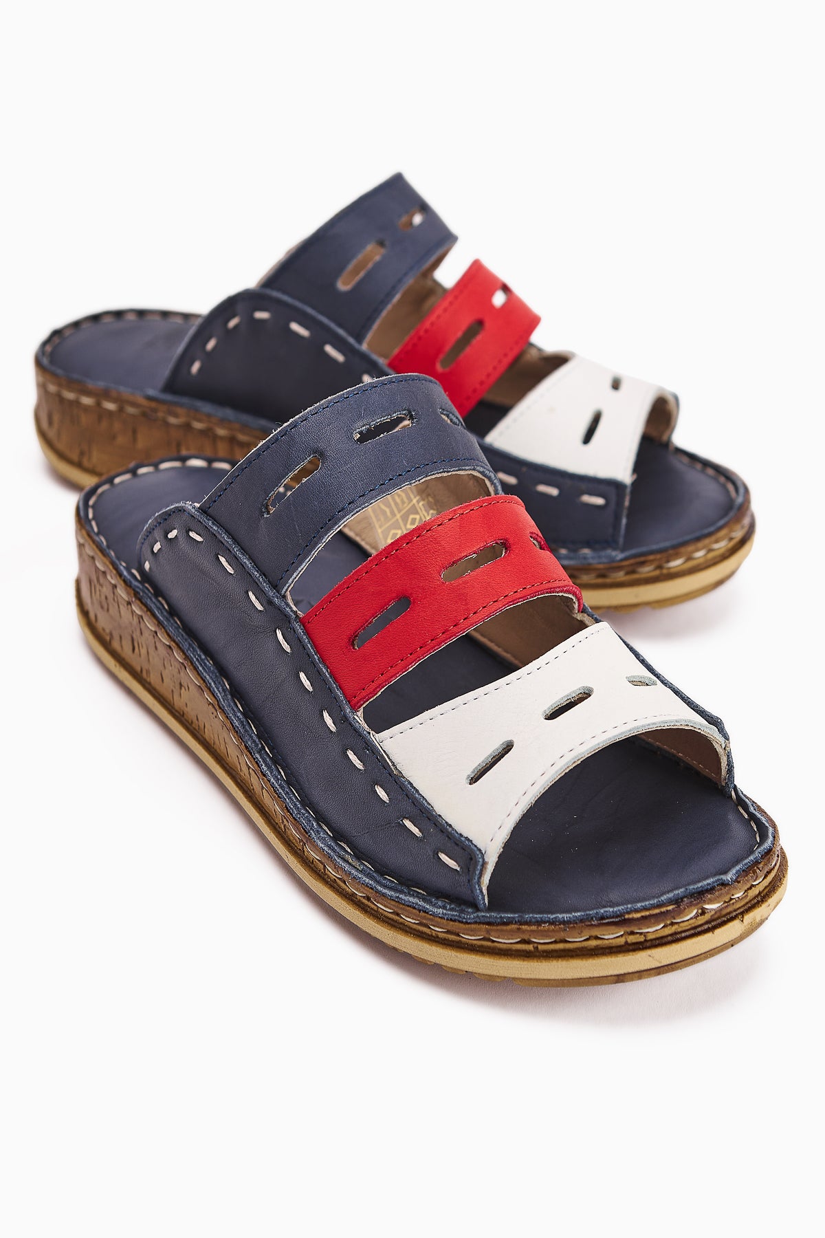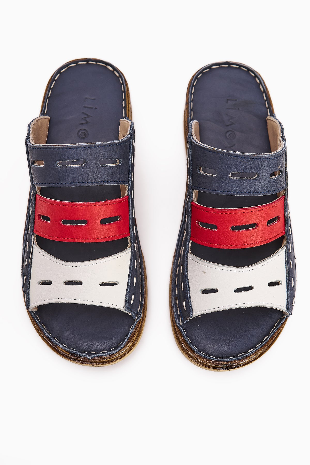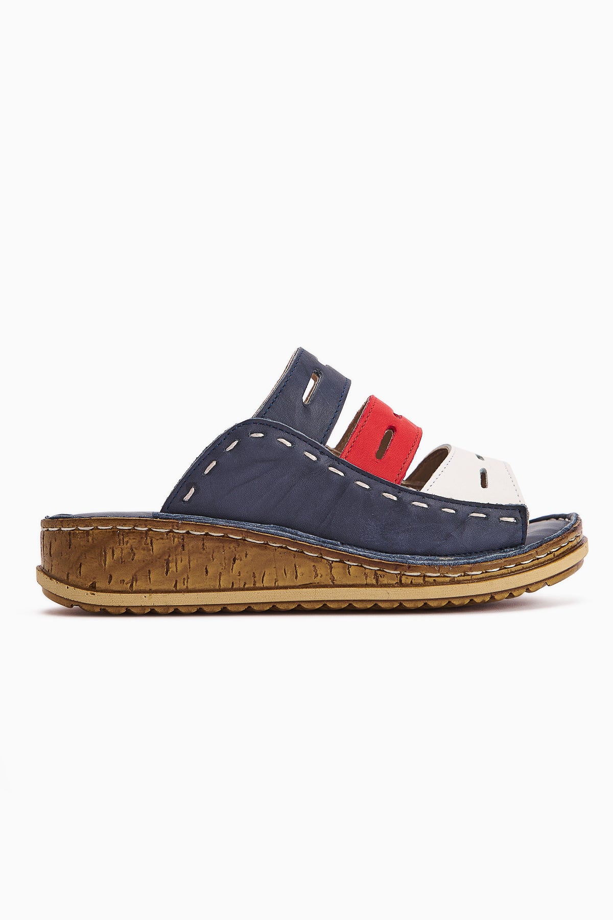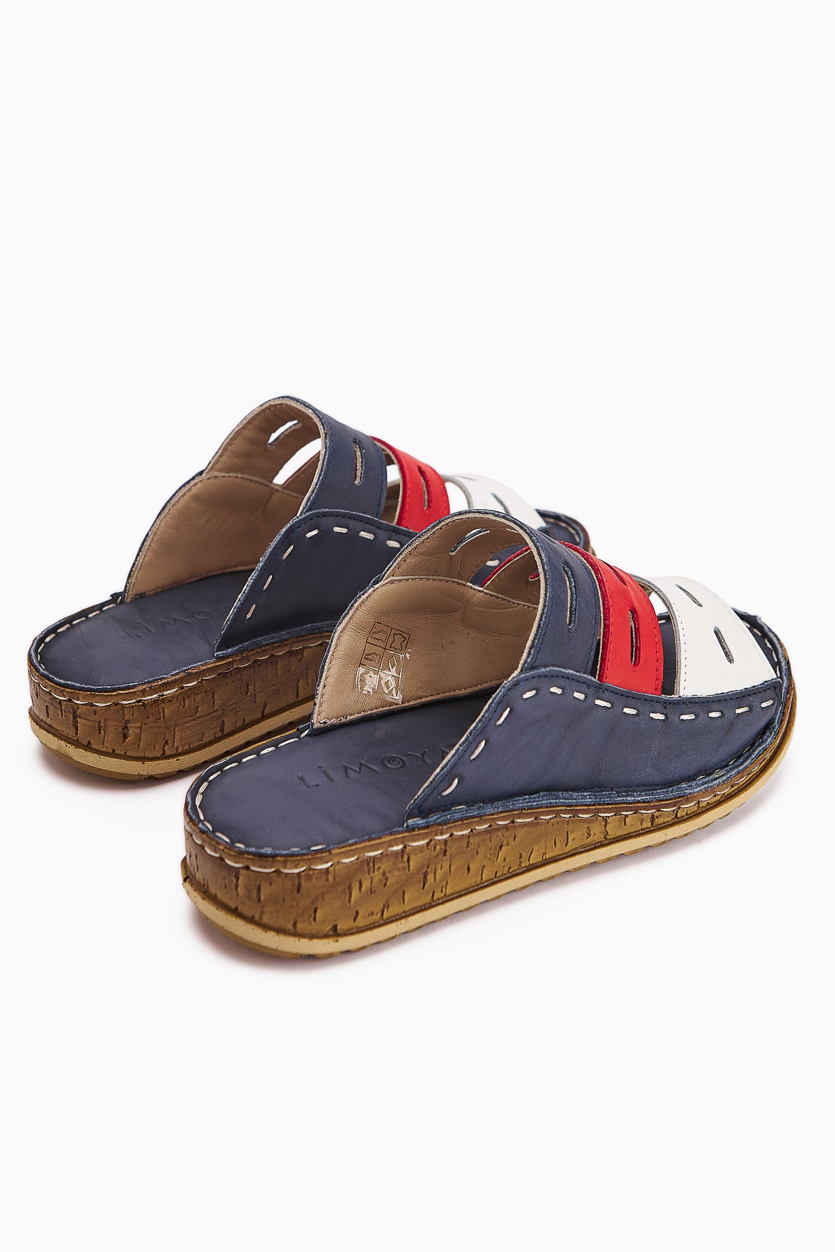 Hakiki Deri Joelle Lacivert Kırmızı Beyaz Comfort Lazer Kesim Terlik