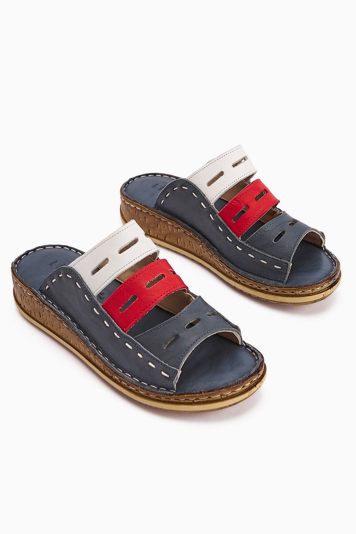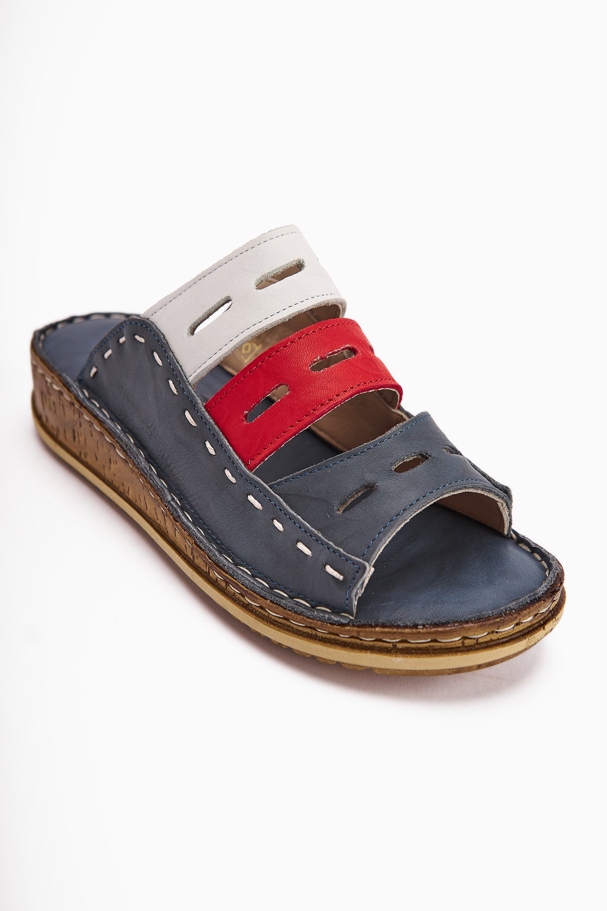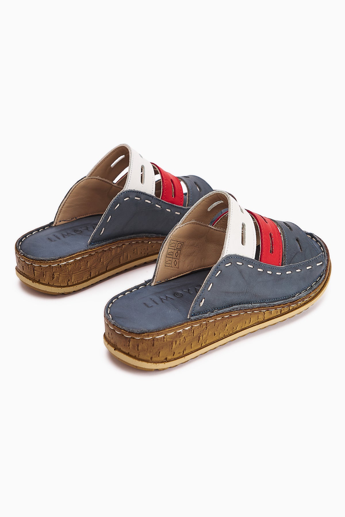 Hakiki Deri Joelle Mavi Comfort Lazer Kesim Terlik