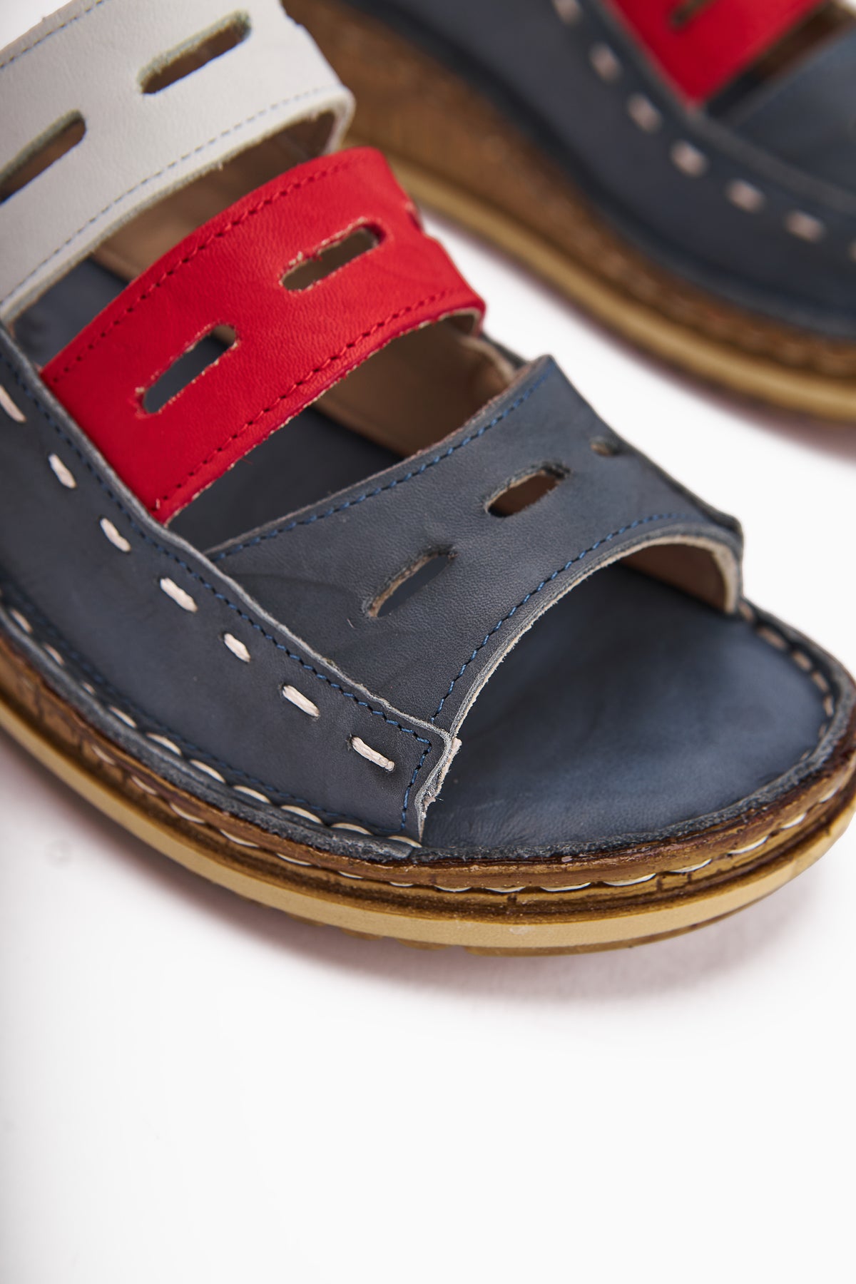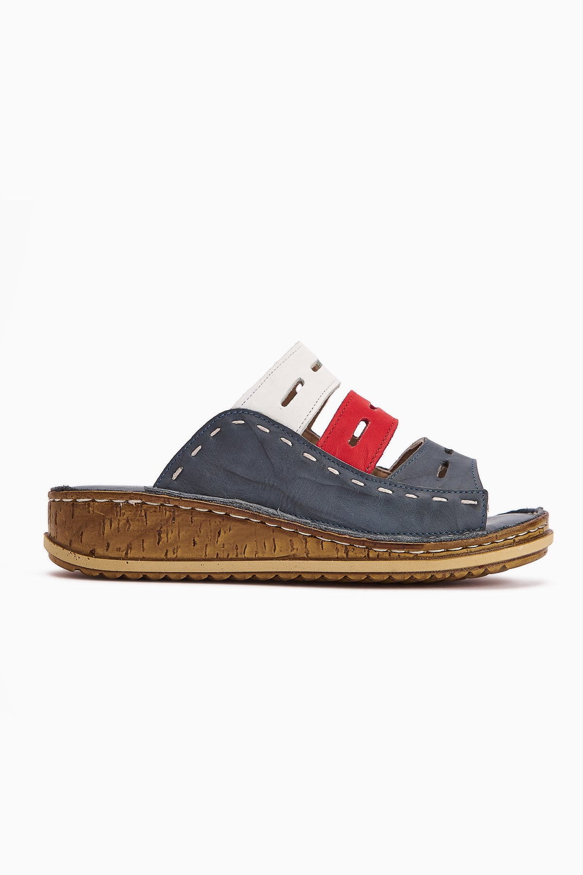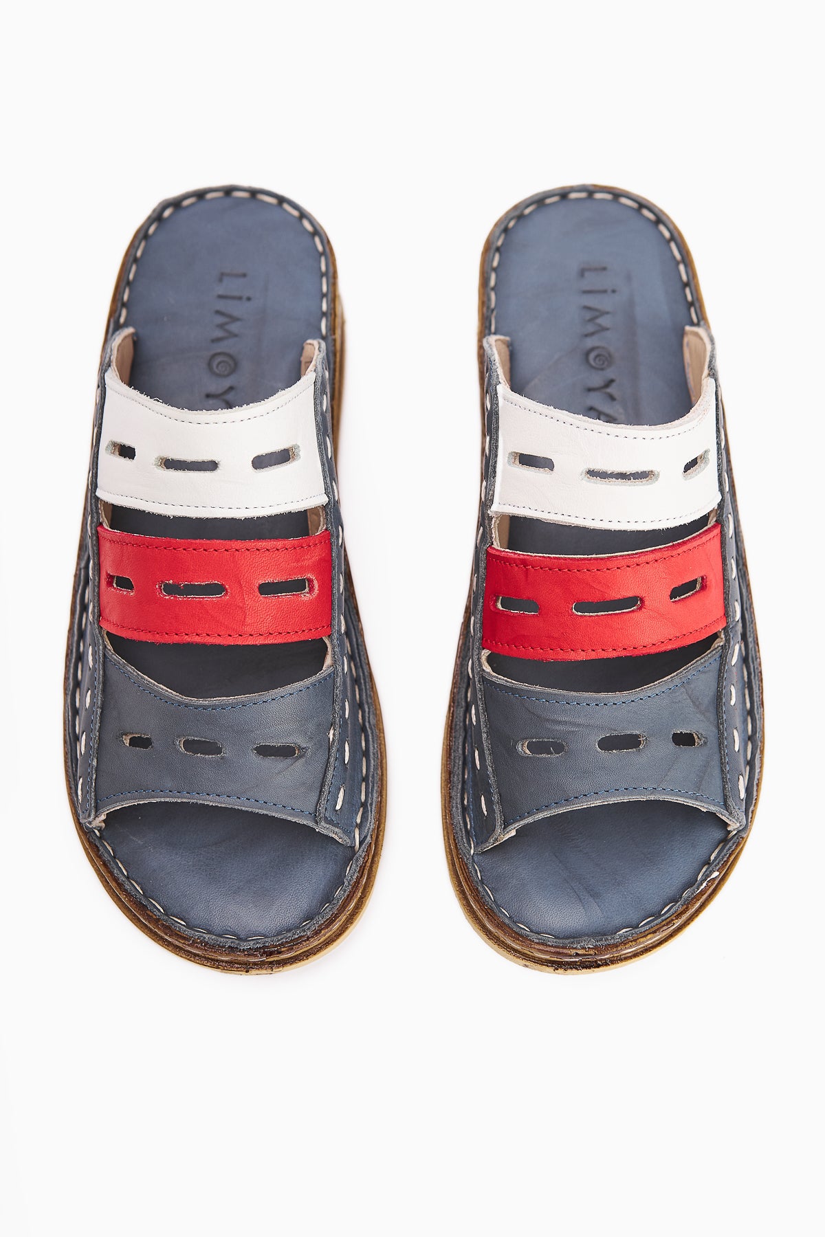 Hakiki Deri Joelle Mavi Comfort Lazer Kesim Terlik