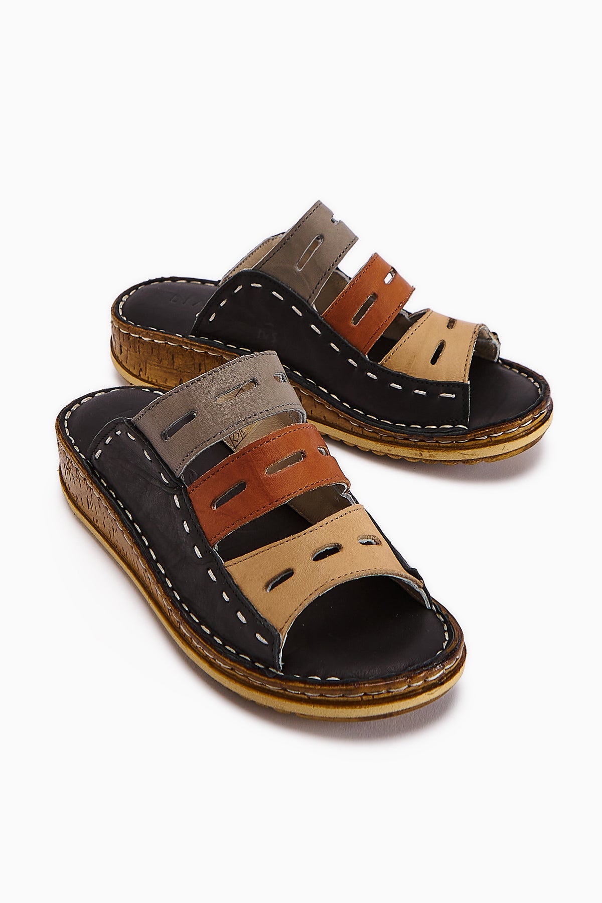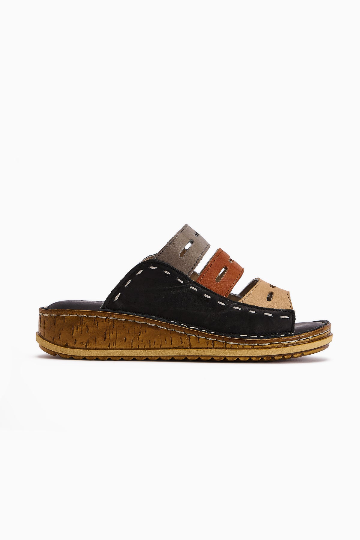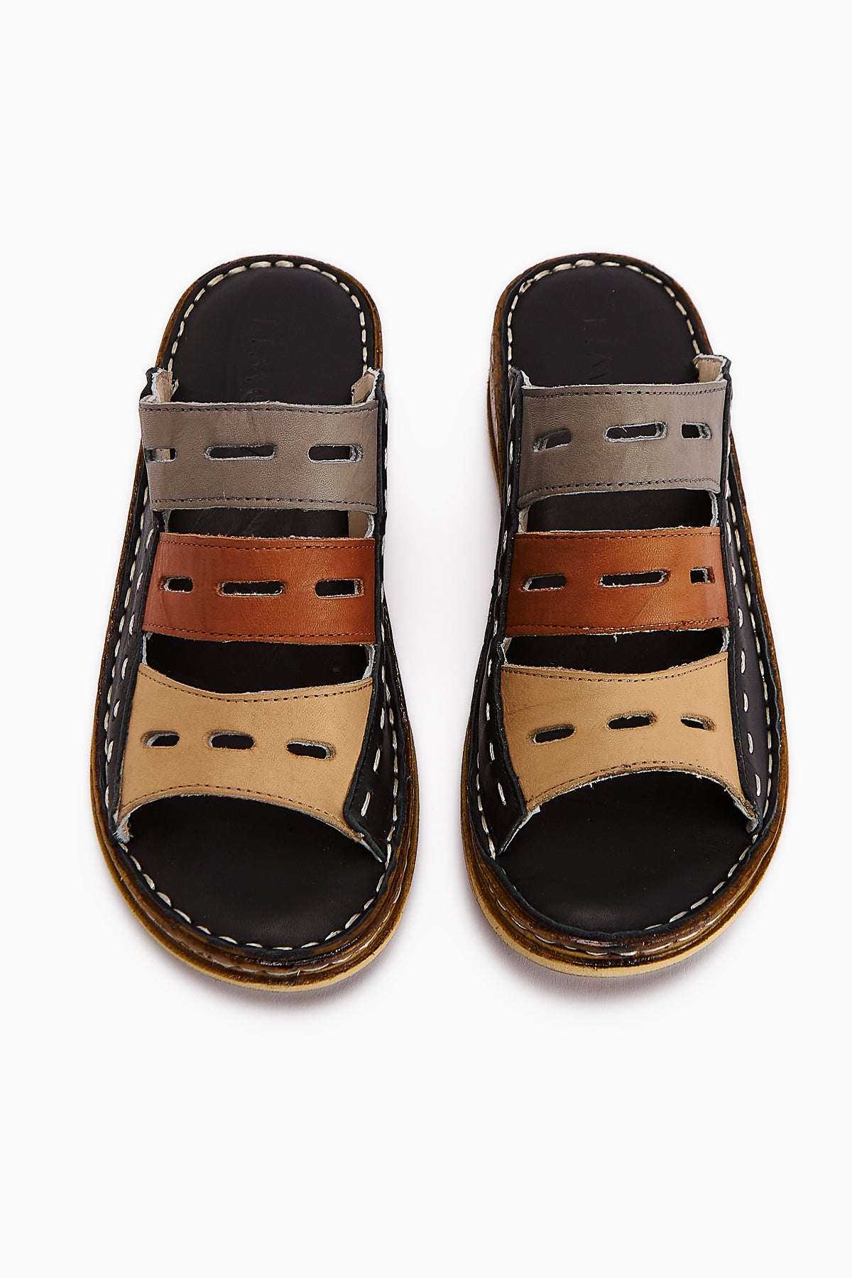 Hakiki Deri Joelle Siyah Comfort Lazer Kesim Terlik