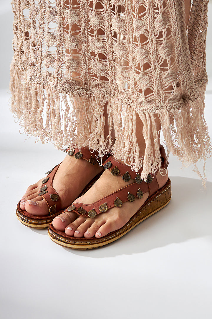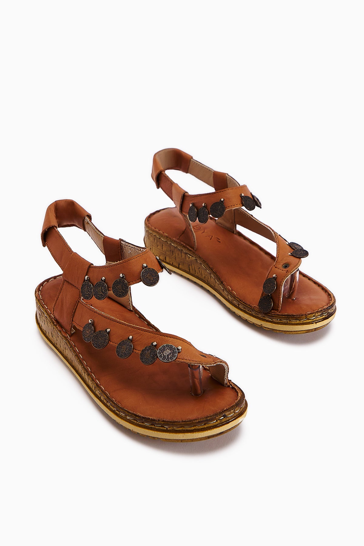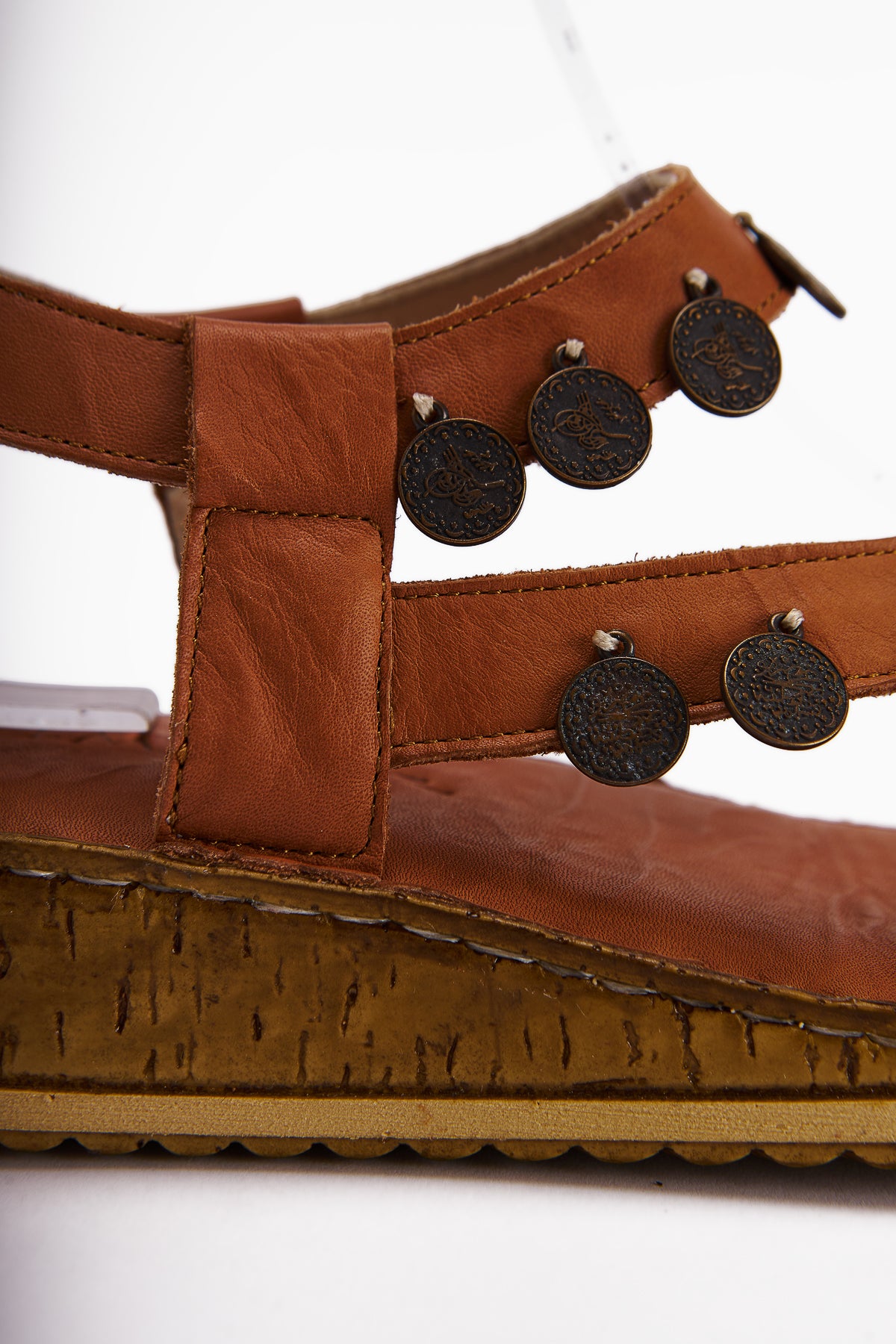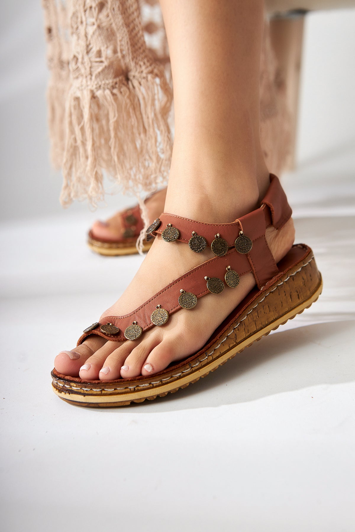 Hakiki Deri Lilah Taba Antik Detaylı Sandalet
