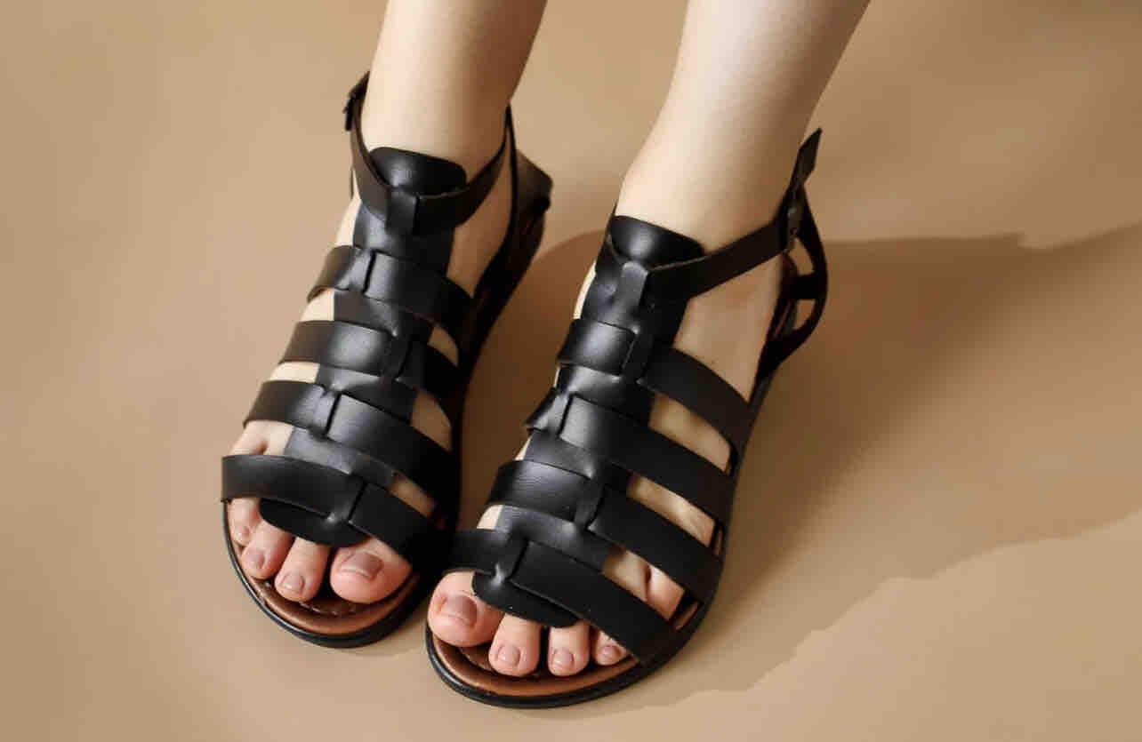 Hakiki Deri Messalina Siyah Gladyatör Sandalet
