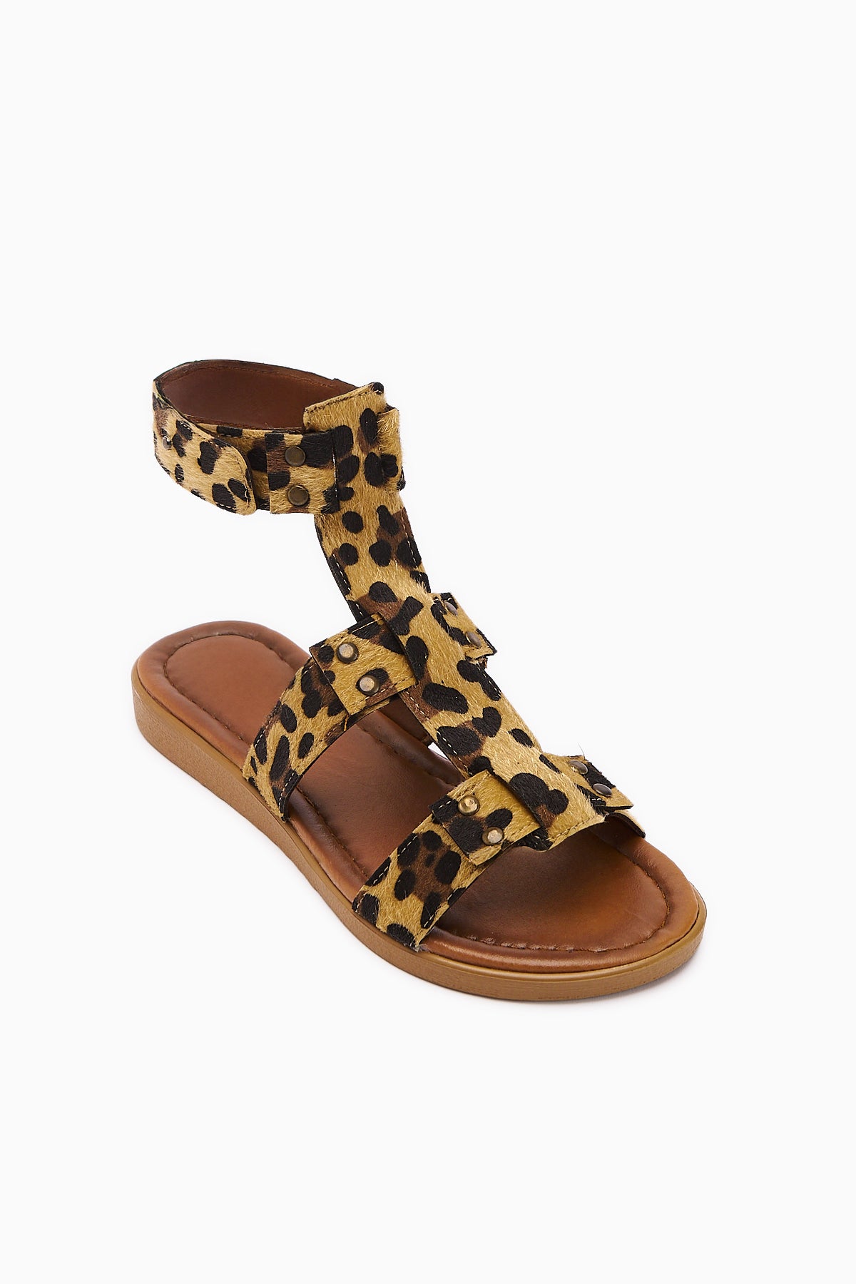 Hakiki Deri Rayen Üç Bantlı Perçin Detaylı Kemer Sandalet