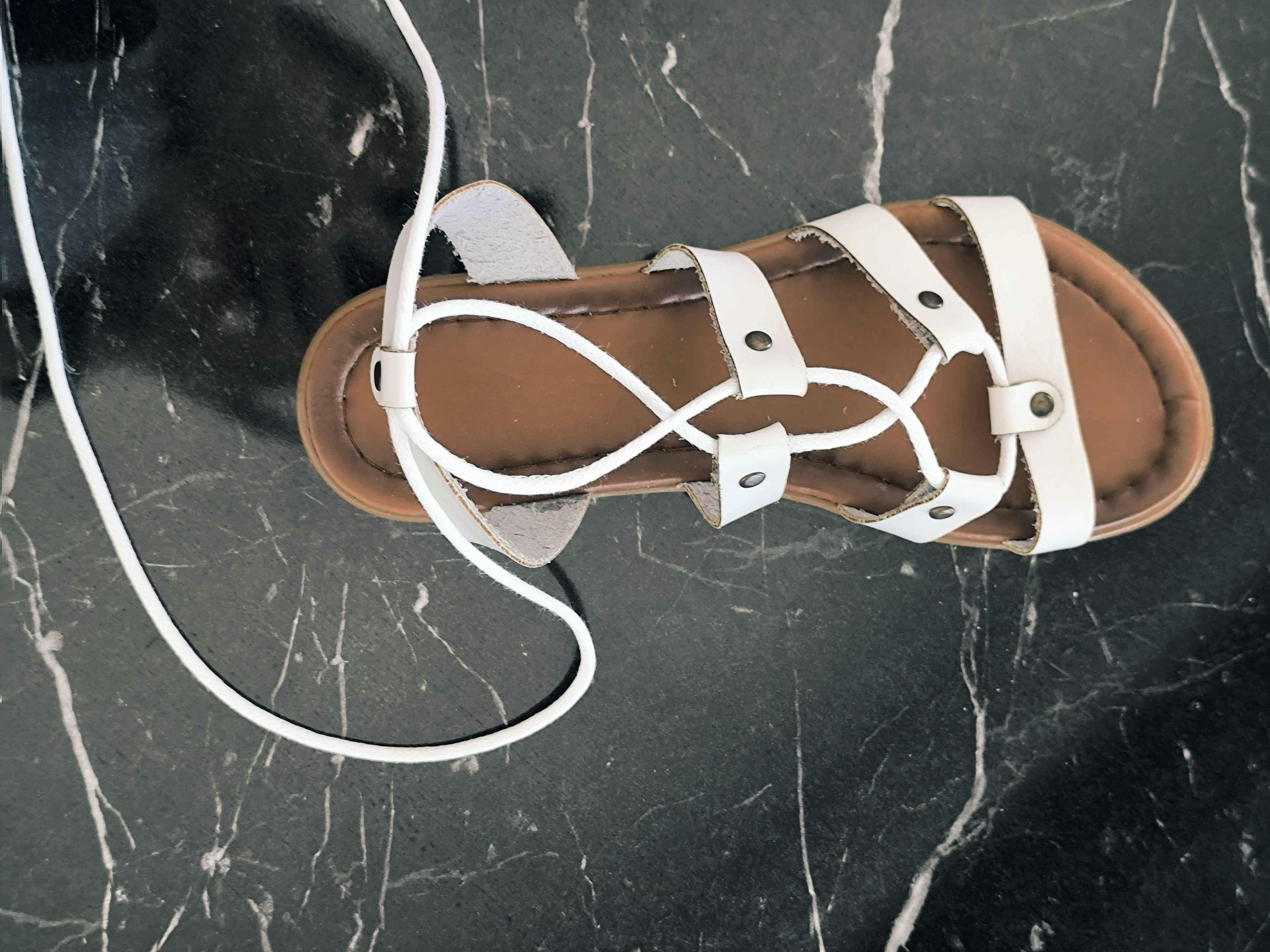 Hakiki Deri Ruut Beyaz Perçin Detaylı Bilekten Bağlamalı Sandalet
