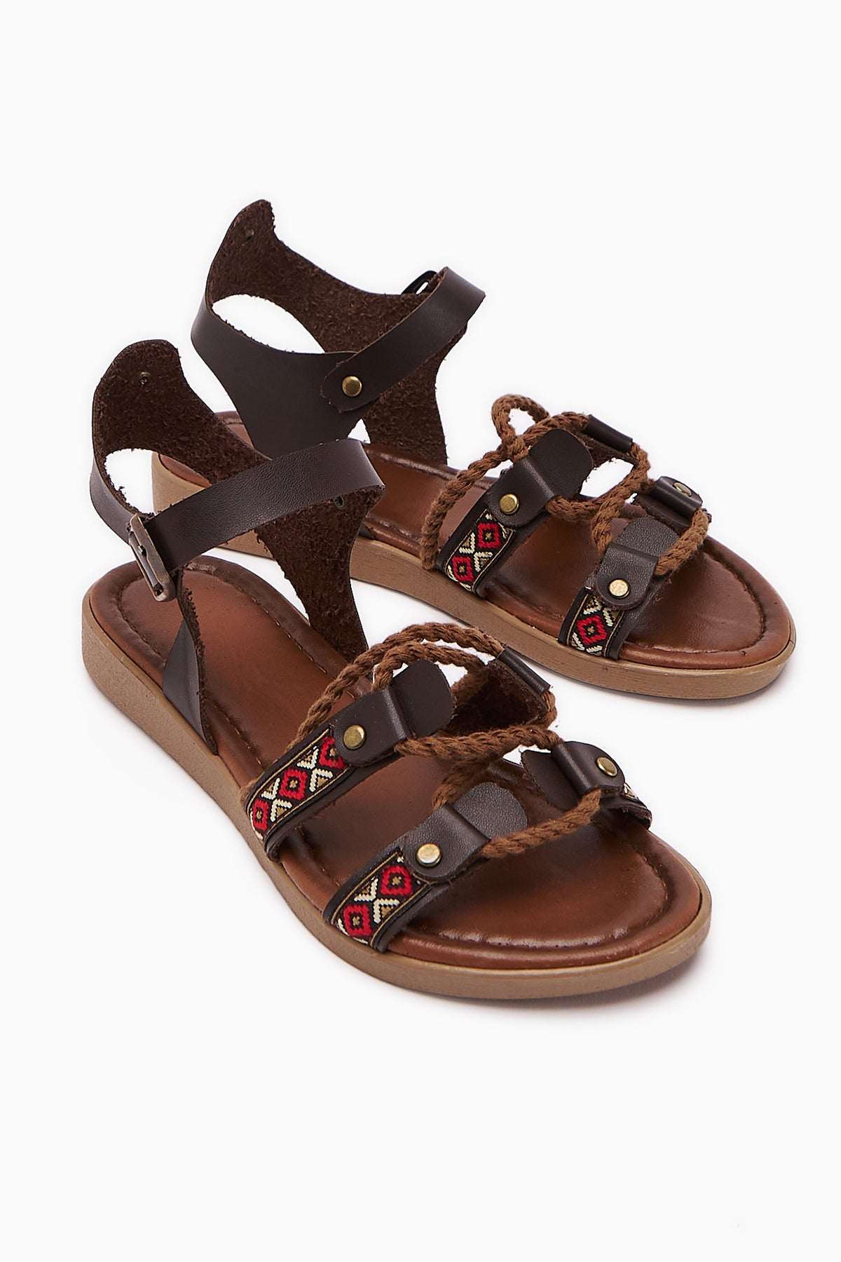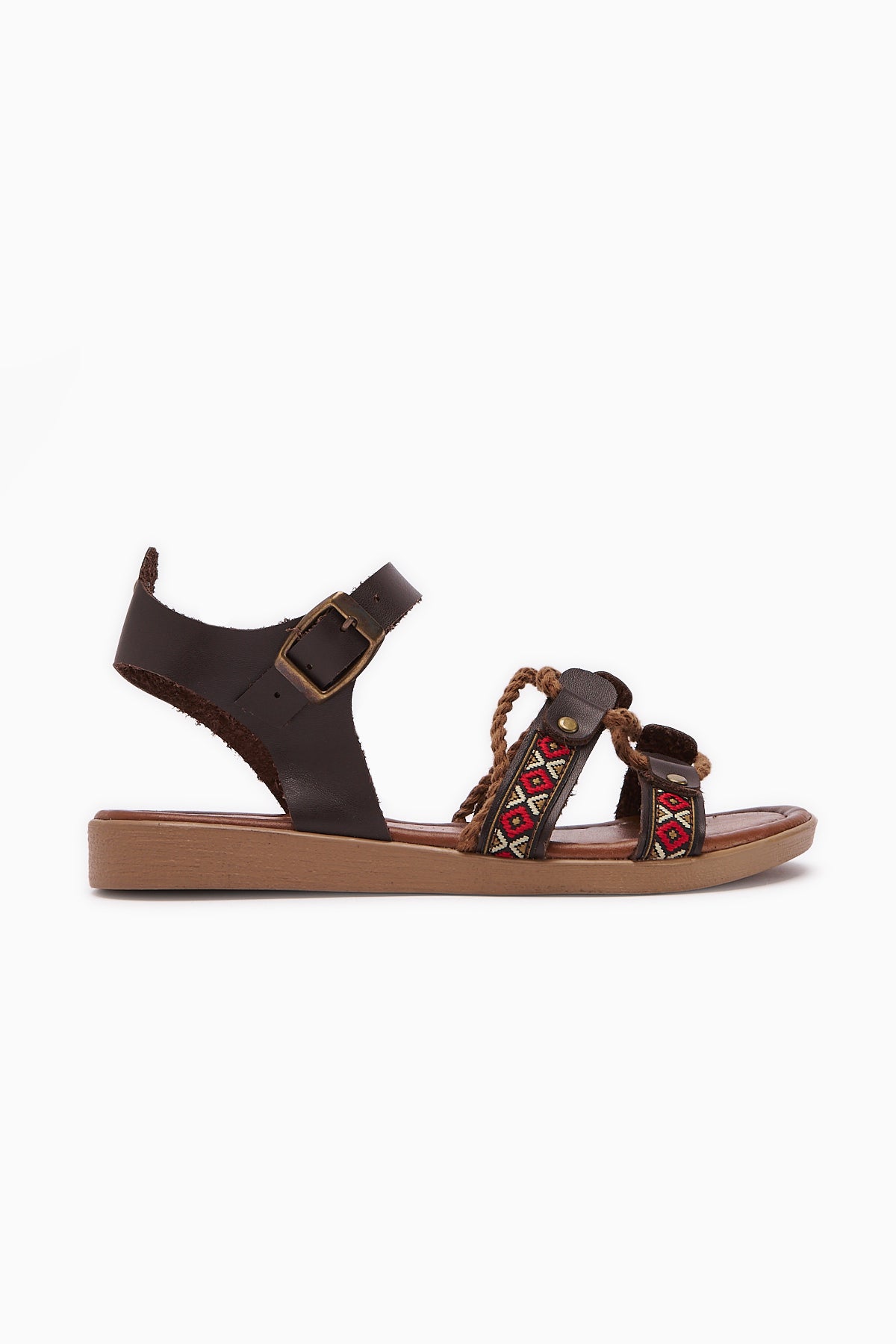 Hakiki Deri Sohna Kahve Otantik İşleme Detaylı Sandalet