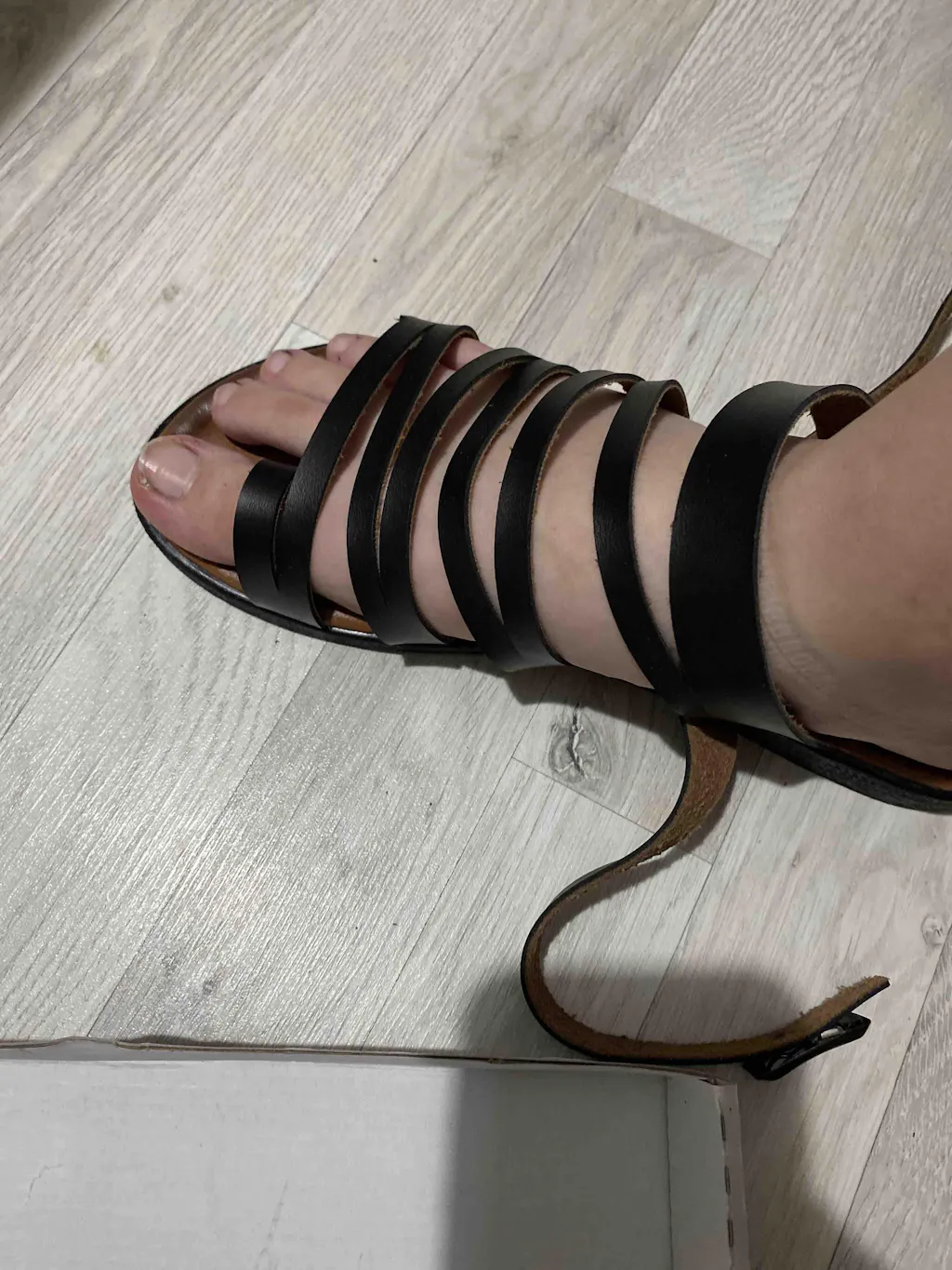 Hakiki Deri Theodora Bantlı Siyah Sandalet