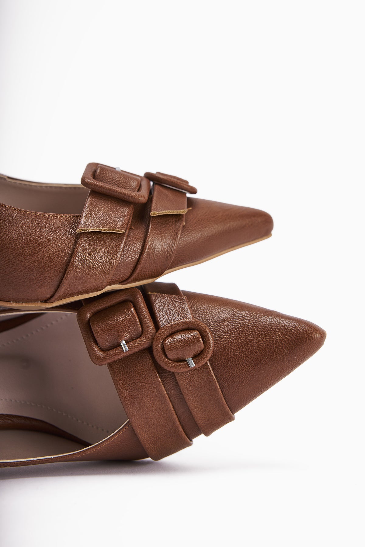 Halez Taba Tokalı Stiletto Sivri Burunlu Kadın Topuklu Ayakkabı