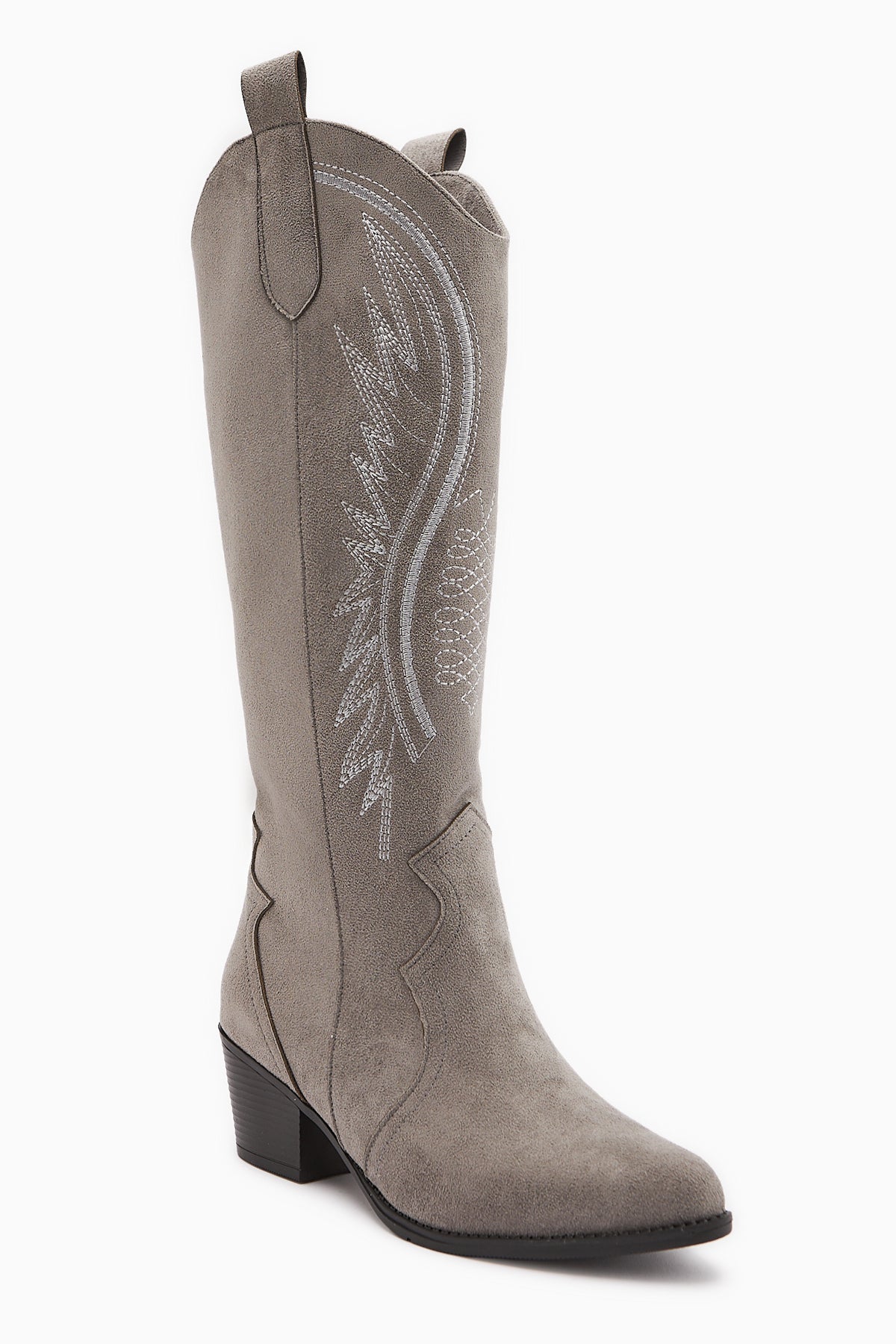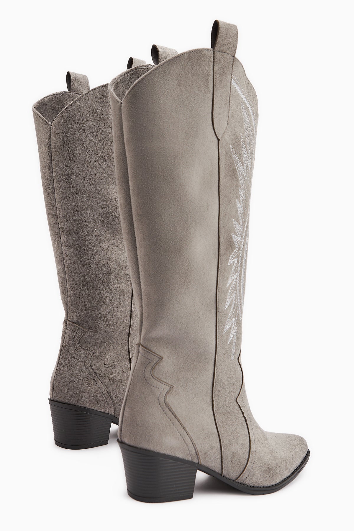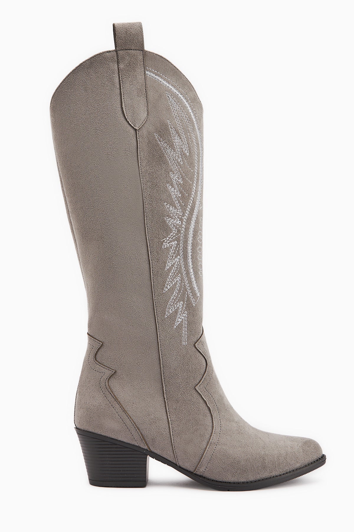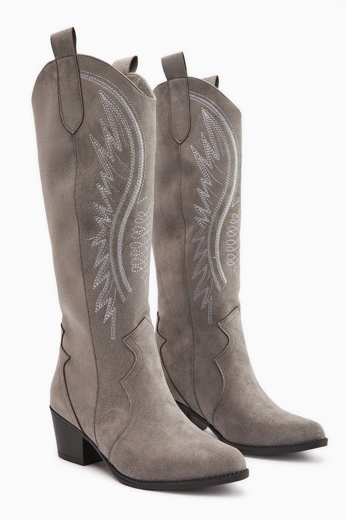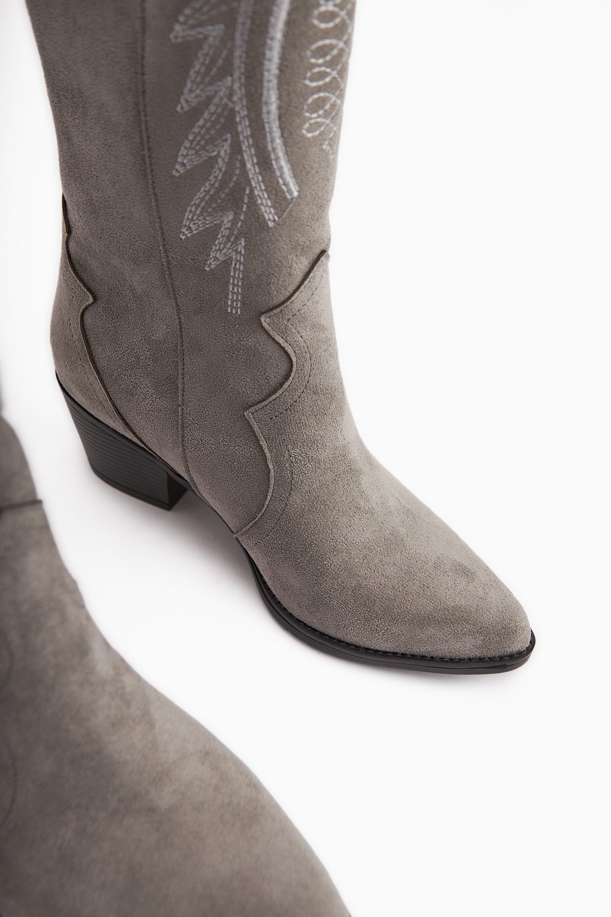 Hero Gri Süet Nakışlı Kovboy Çizme