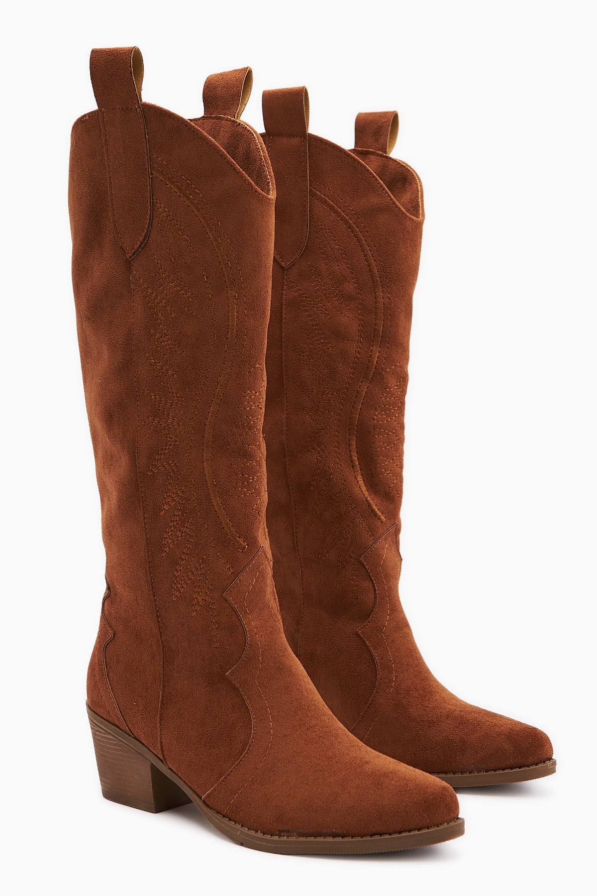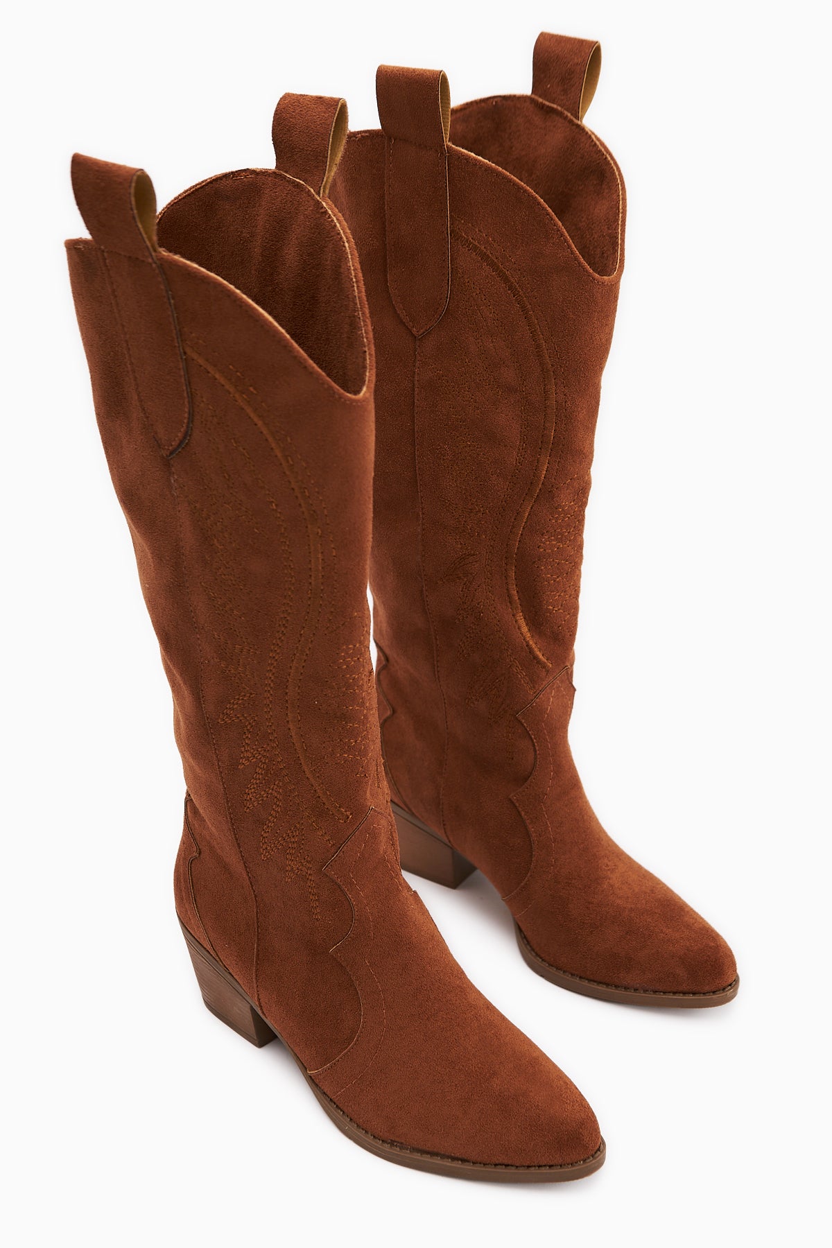 Hero Taba Süet Nakışlı Kovboy Çizme