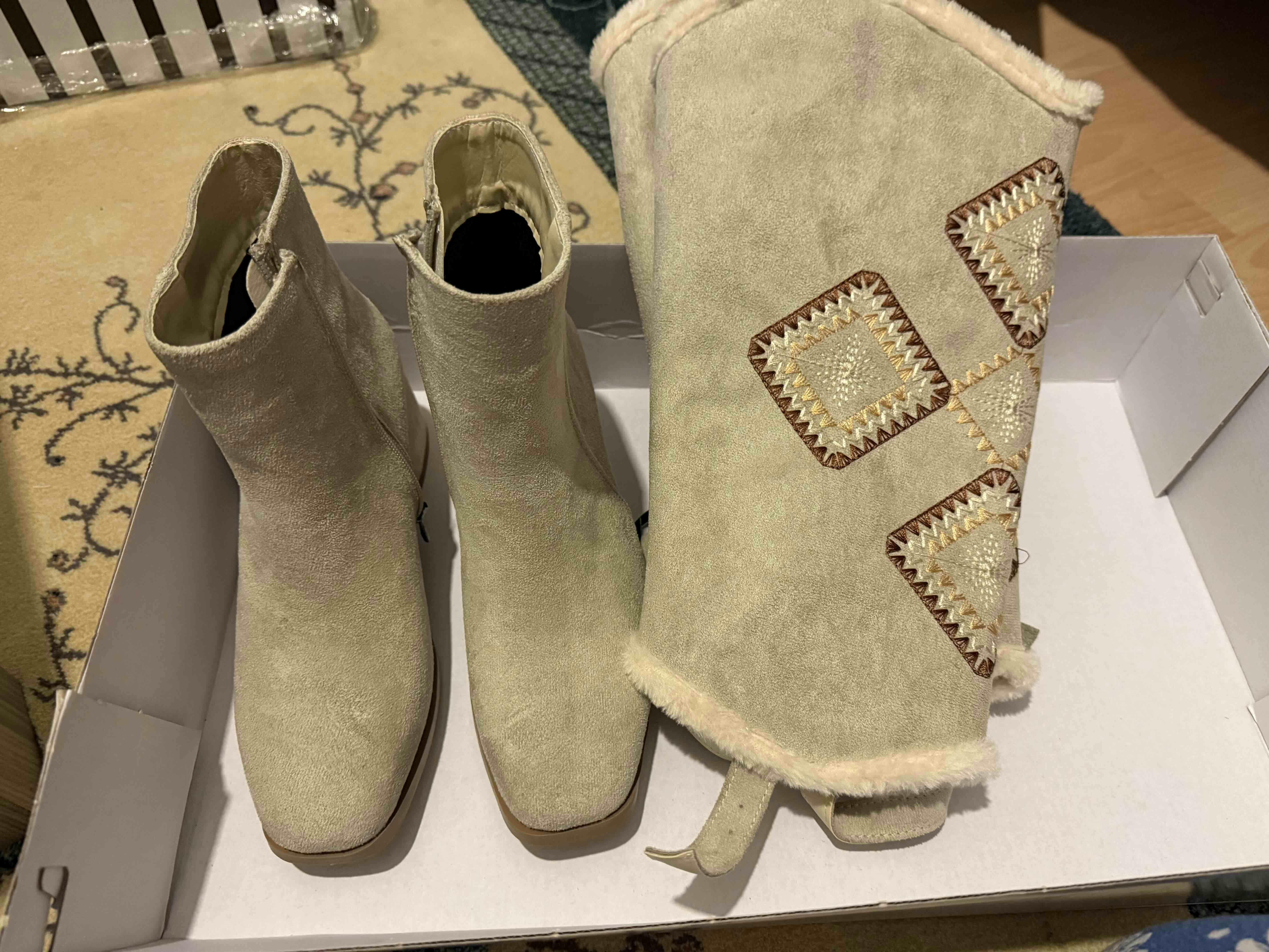Hilka Bej Süet Çıkarılabilir Konçlu Etnik Desenli Bot-Çizme