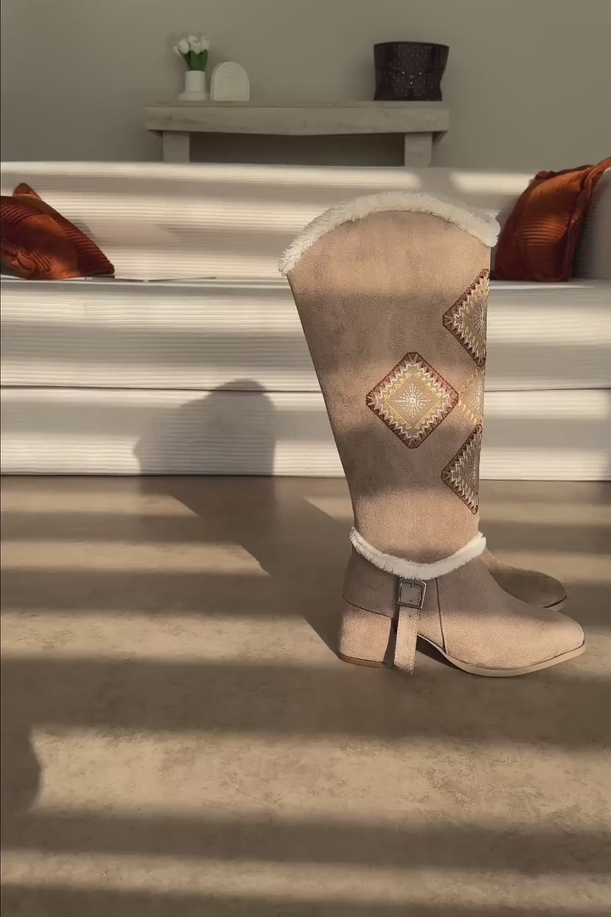 Hilka Kahve Çıkarılabilir Konçlu Etnik Desenli Bot-Çizme