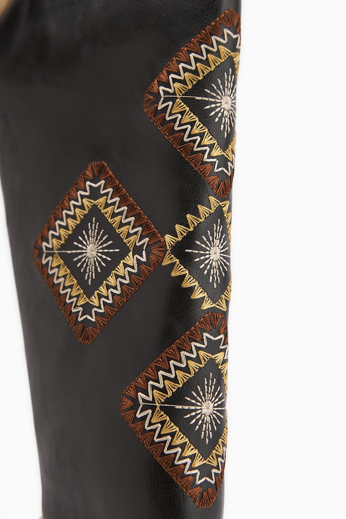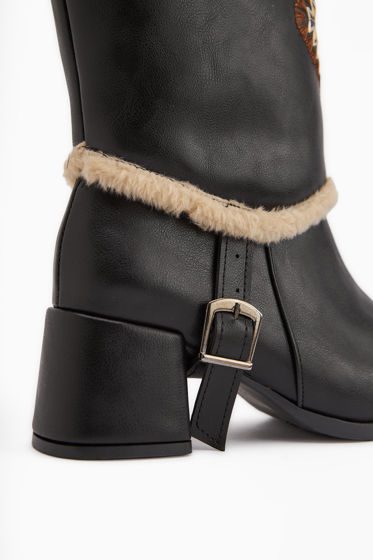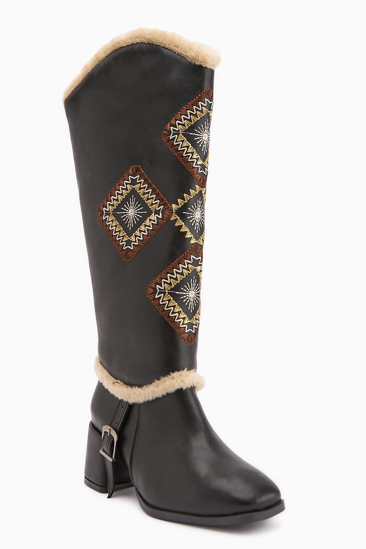 Hilka Siyah Çıkarılabilir Konçlu Etnik Desenli Bot-Çizme