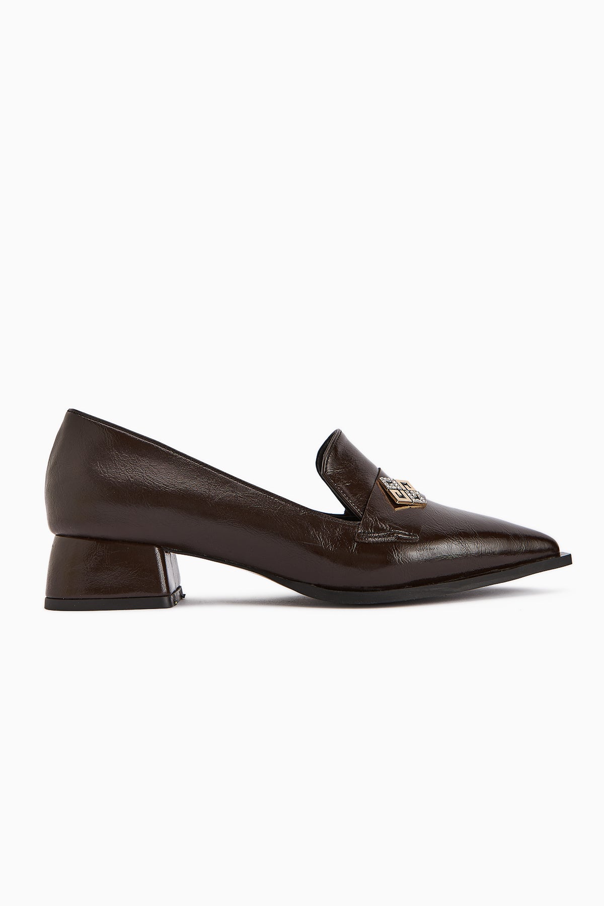 Jaklin Kahve Sivri Burunlu Alçak Topuklu Kadın Ayakkabı