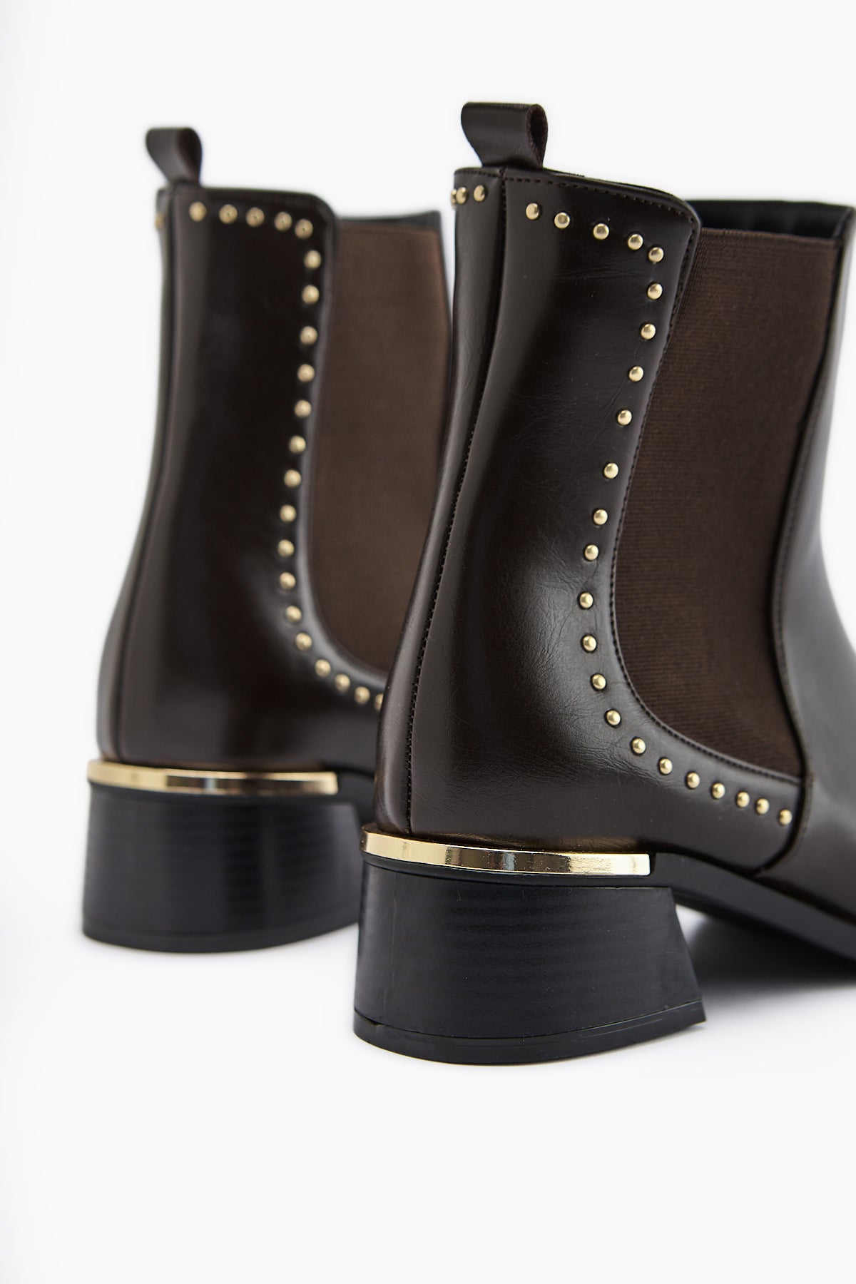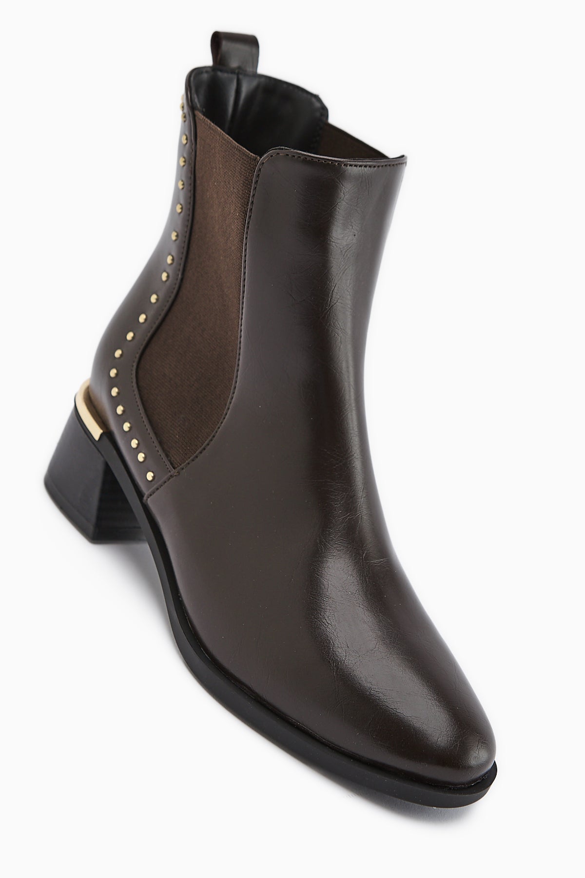 Jane Kahve Lastikli Topuklu Kadın Bot
