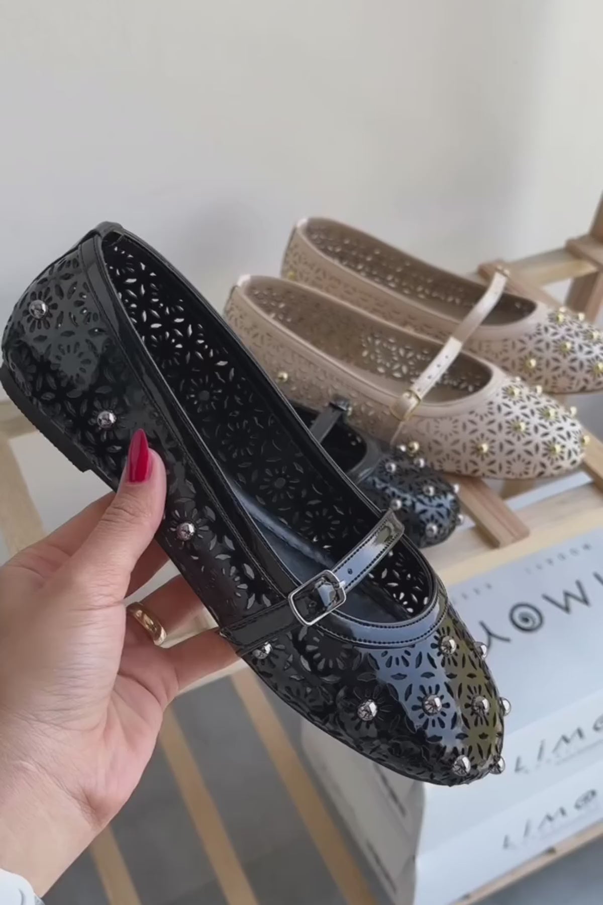 Jara Siyah Rugan Etnik Desenli Delikli Kadın Babet Ayakkabı