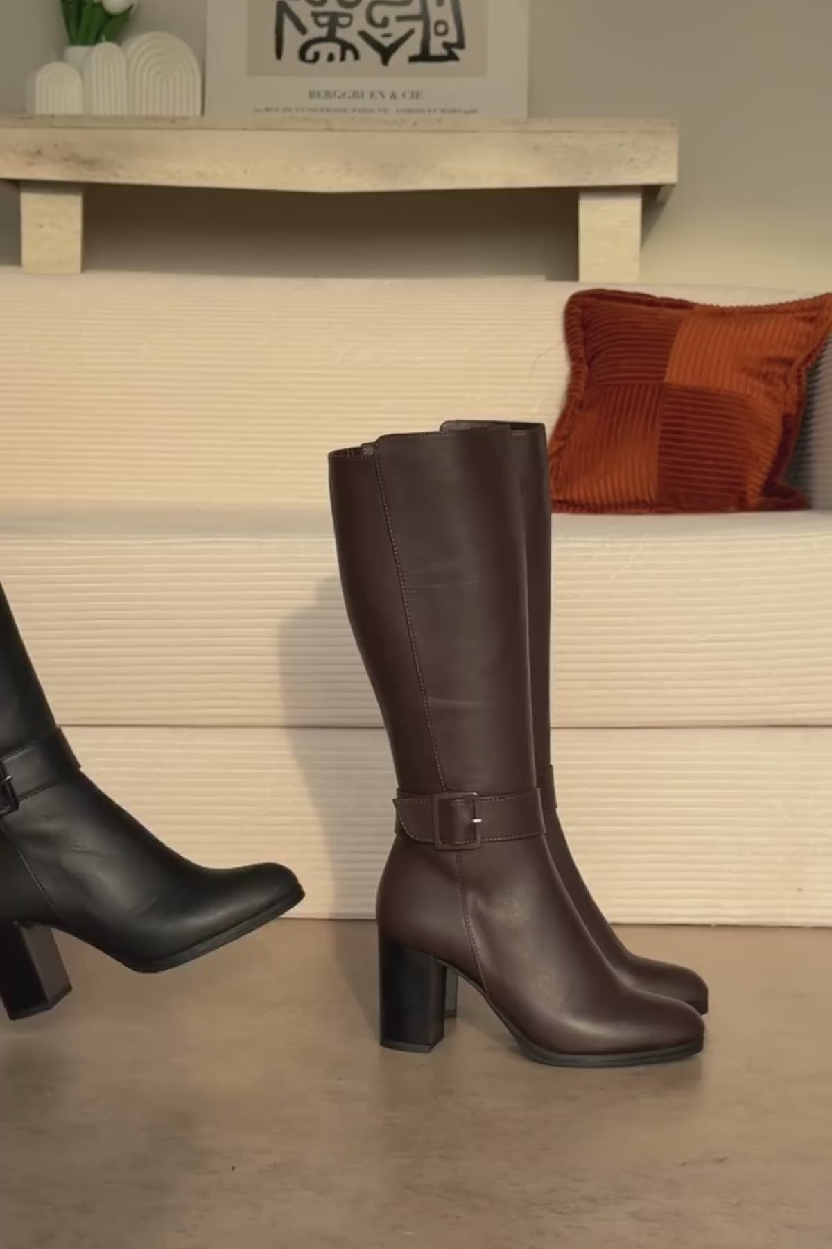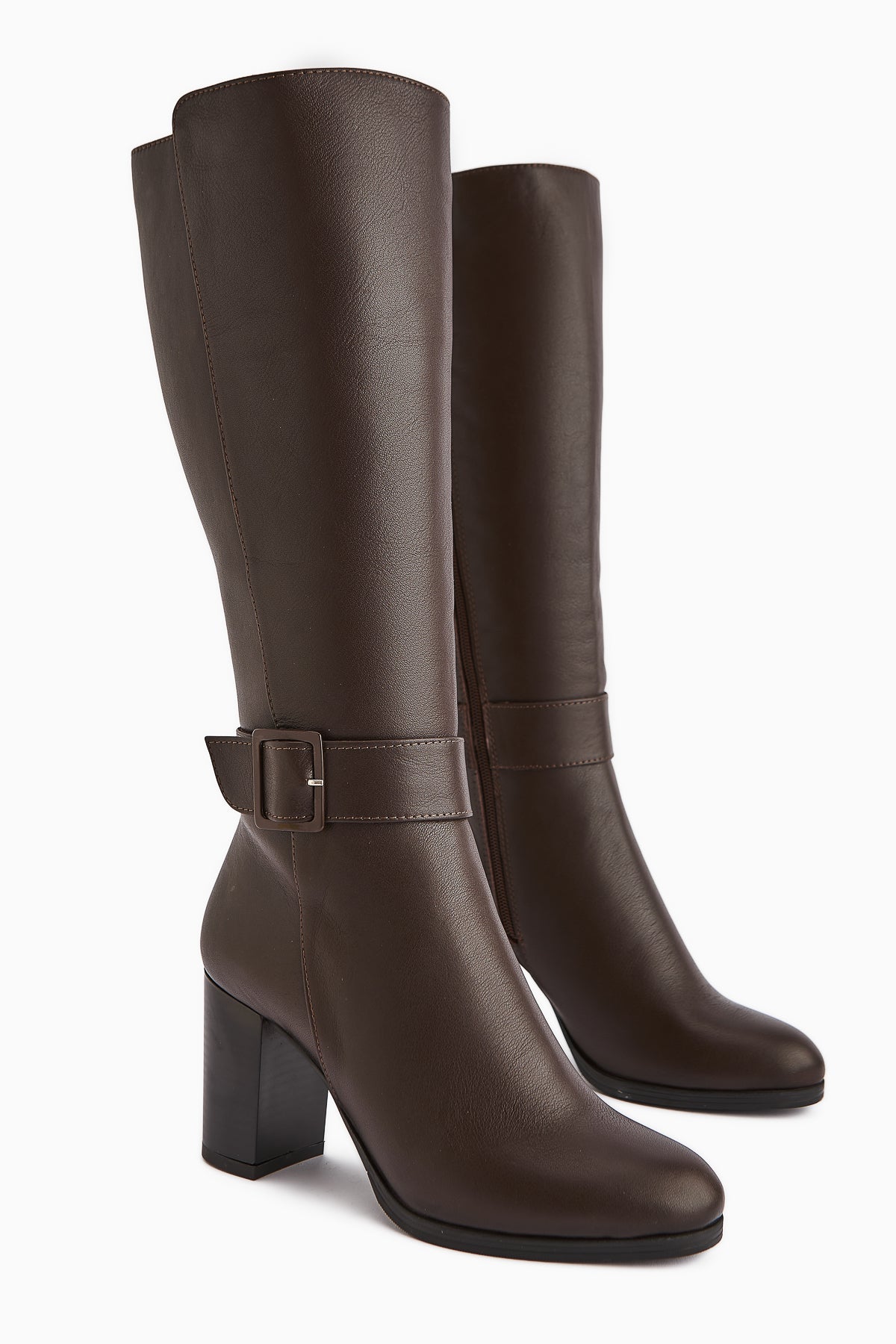 Jeen Hakiki Deri Kahve Topuklu Kadın Çizme