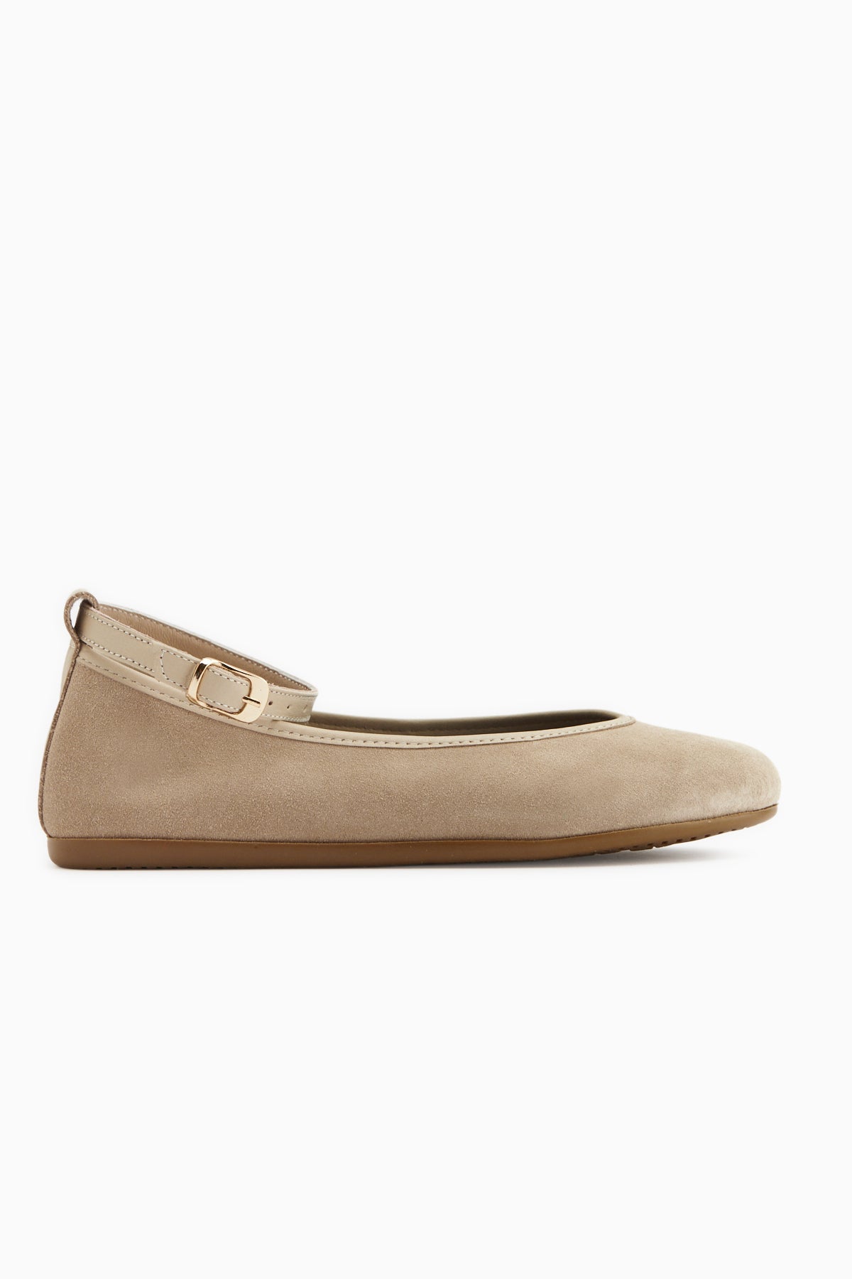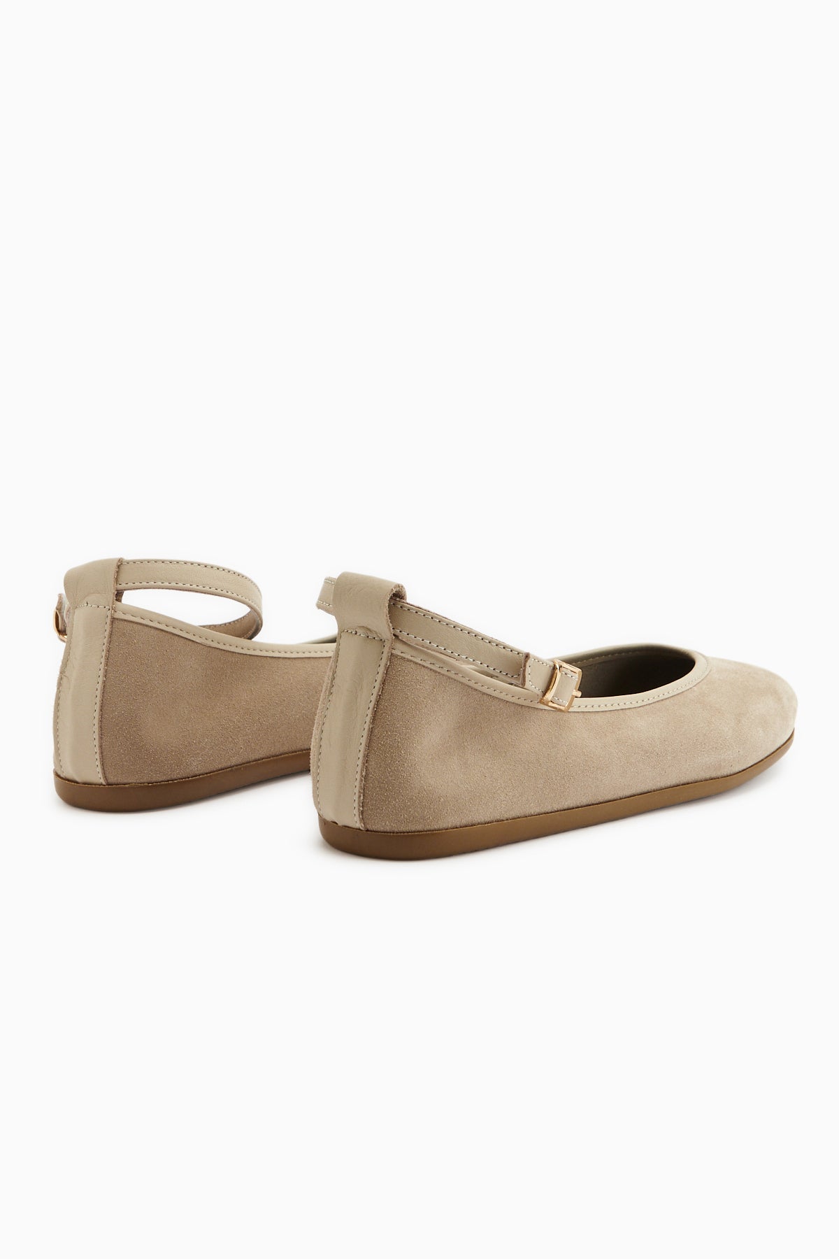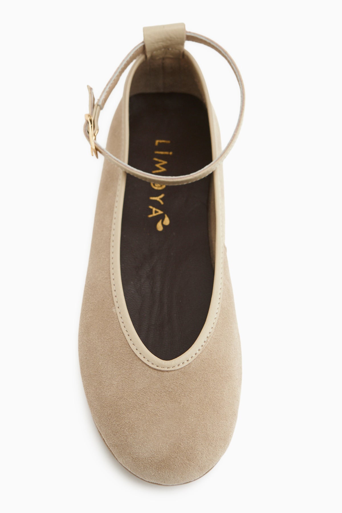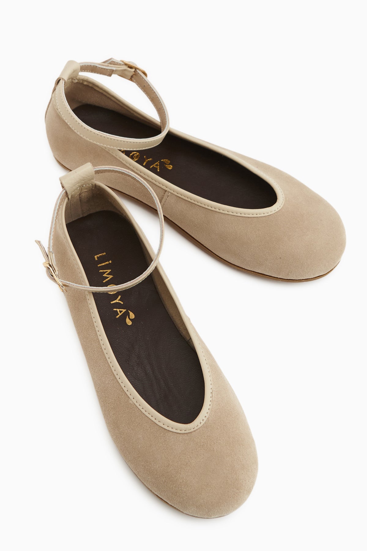 Jenin Hakiki Deri Bej Süet Kemerli Kadın Babet