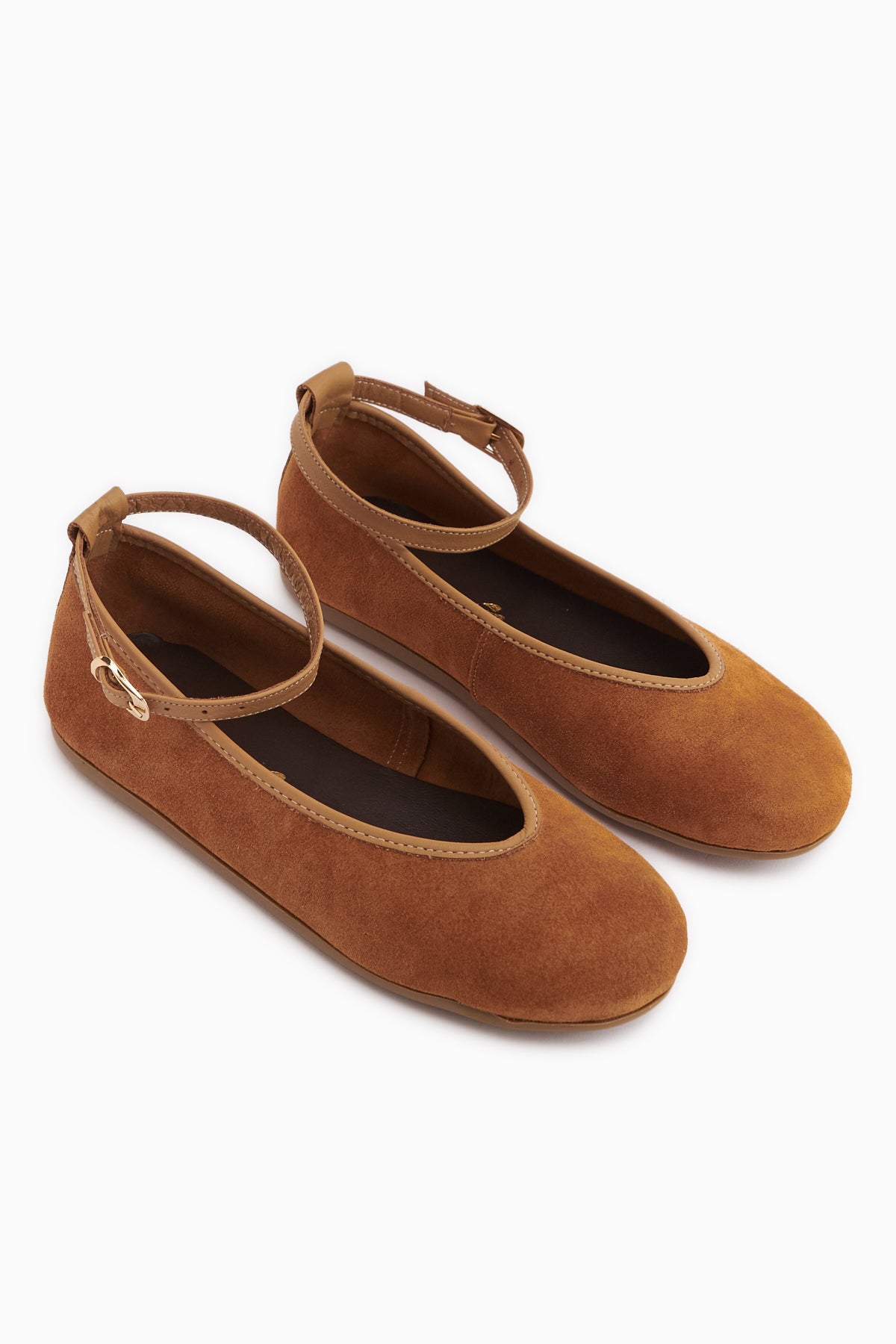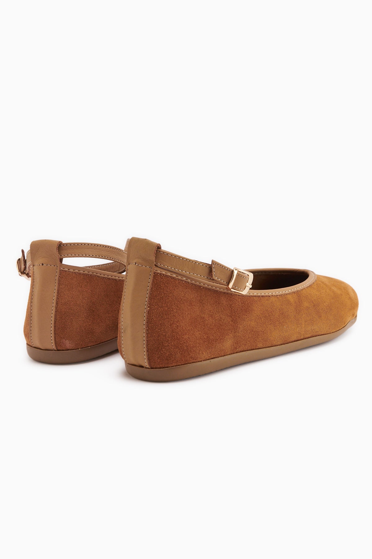 Jenin Hakiki Deri Camel Süet Kemerli Kadın Babet