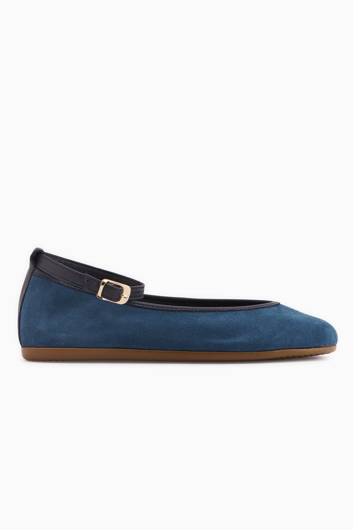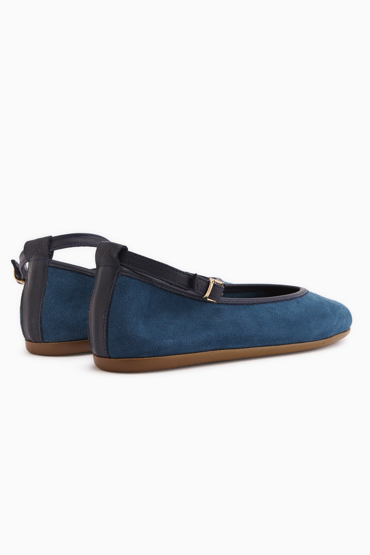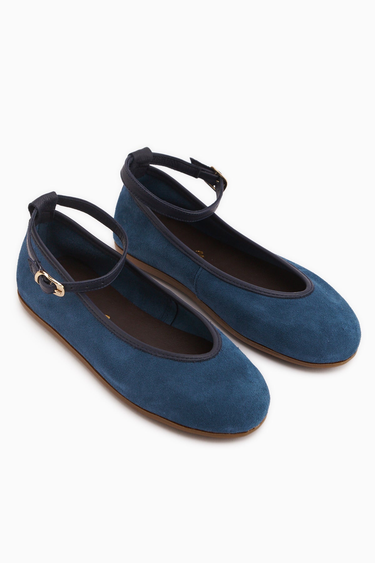 Jenin Hakiki Deri Lacivert Süet Kemerli Kadın Babet