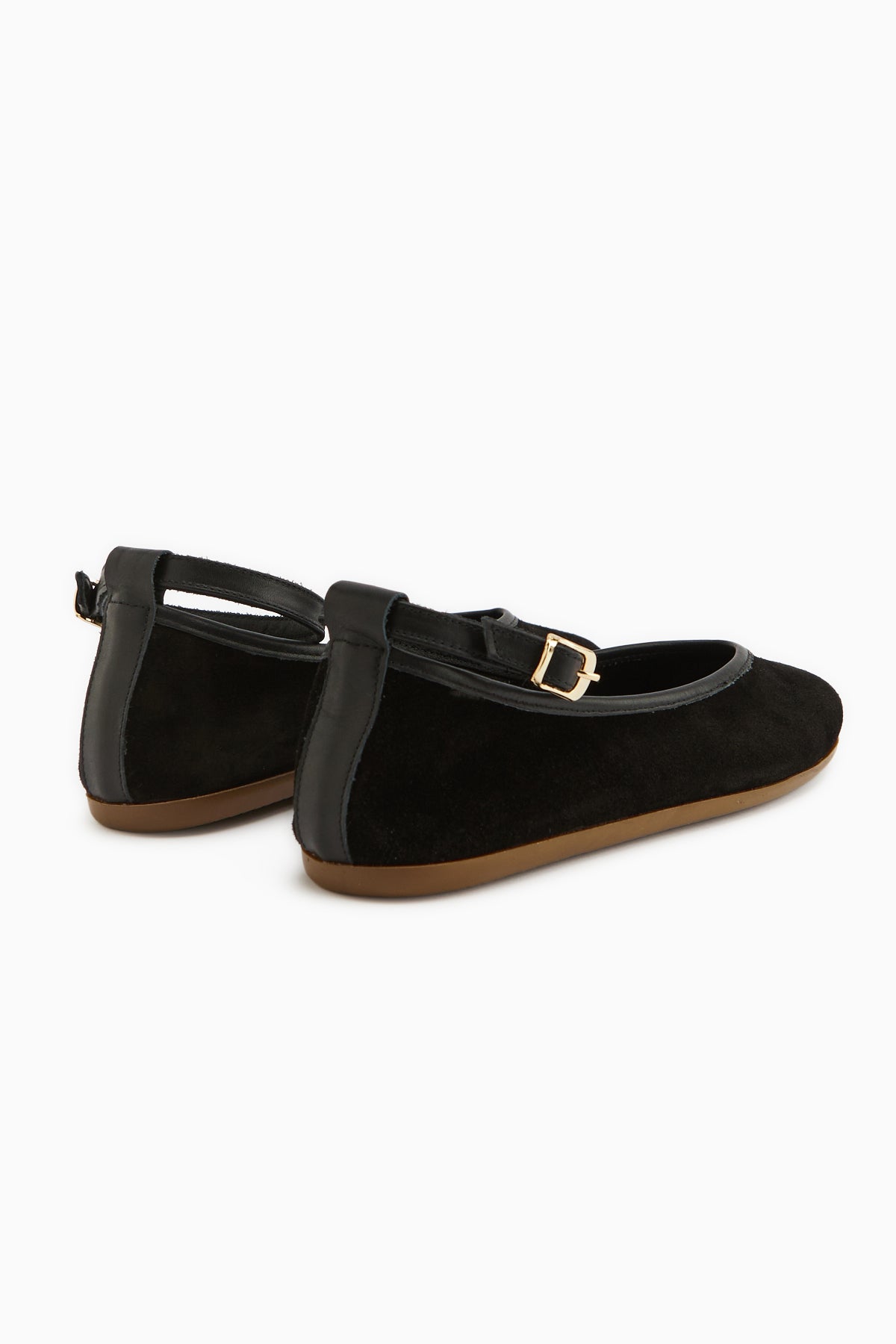 Jenin Hakiki Deri Siyah Süet Kemerli Kadın Babet