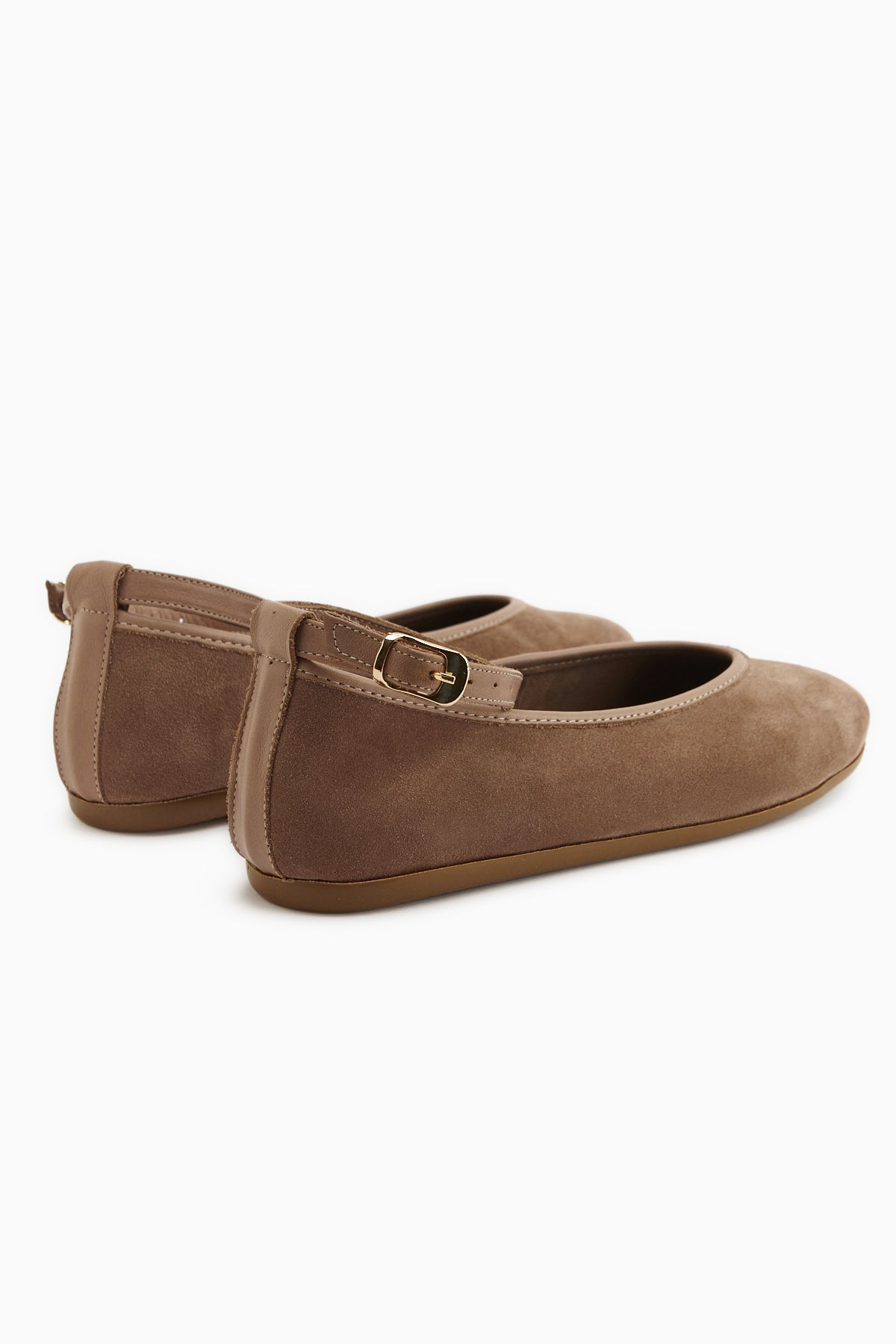 Jenin Hakiki Deri Vizon Süet Kemerli Kadın Babet