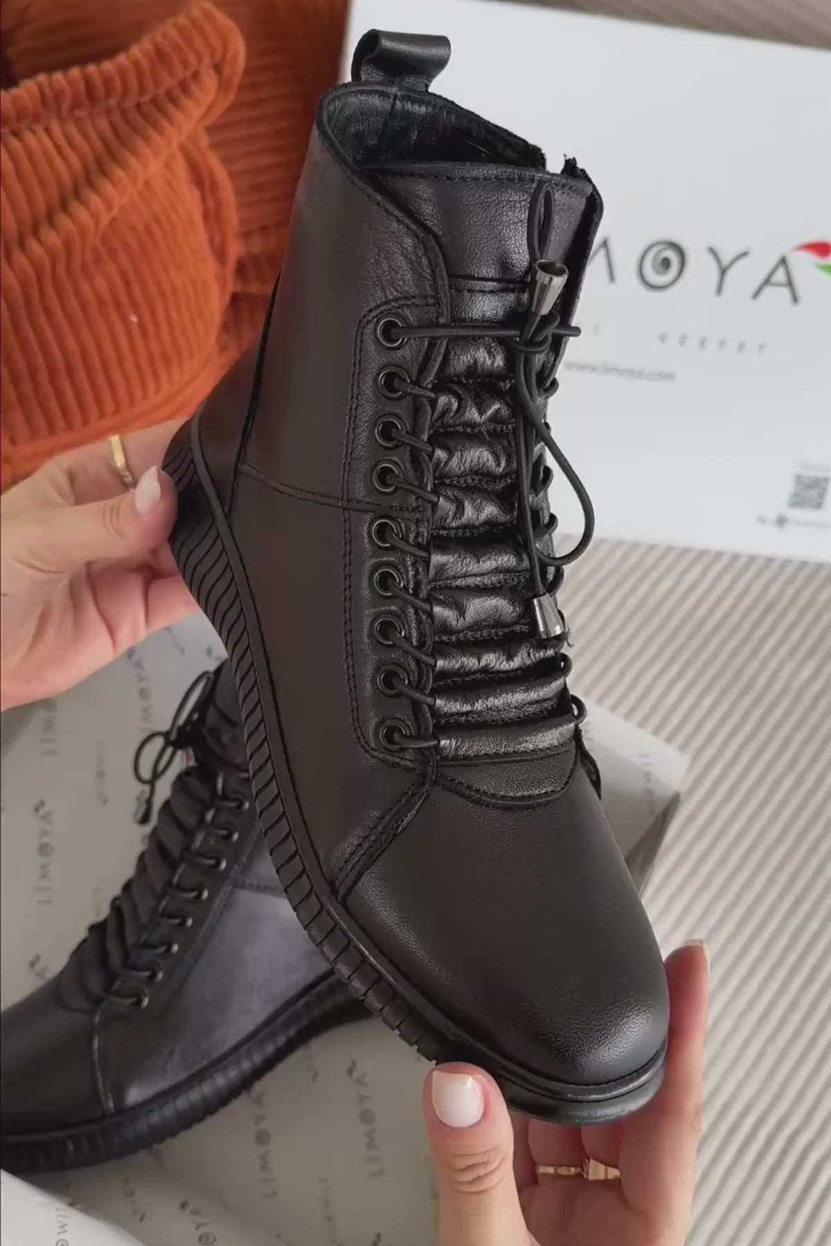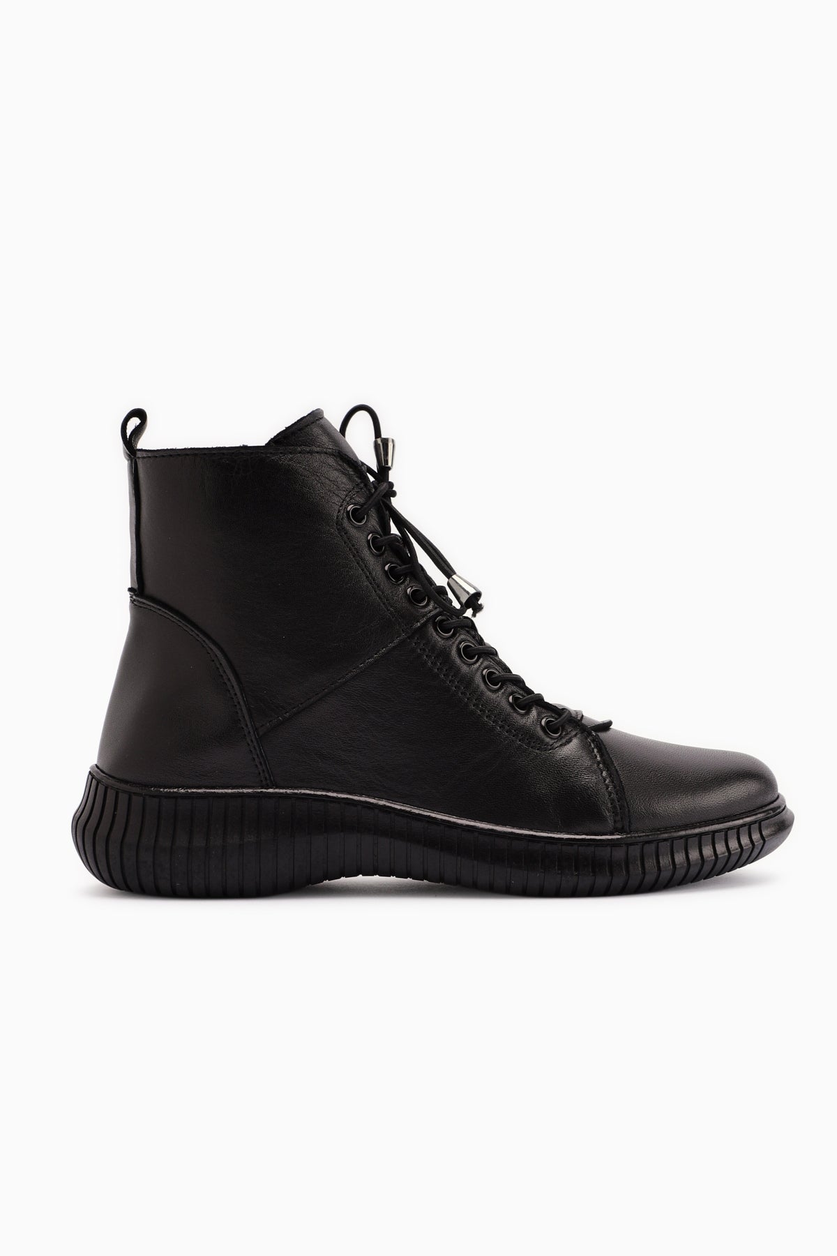Jina Hakiki Deri Siyah Bağcıklı Kadın Bot