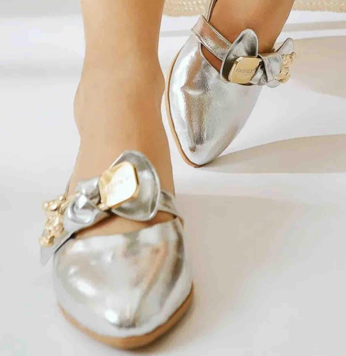 Joselin Gümüş Kırışık Rugan Fiyonk Aksesuarlı Babet