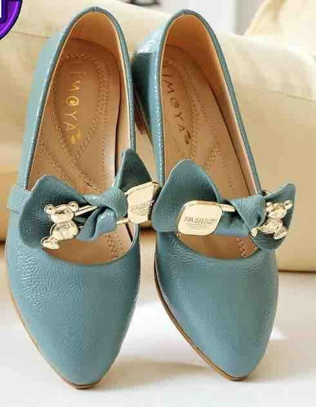 Joselin Turkuaz Kırışık Rugan Fiyonk Aksesuarlı Babet