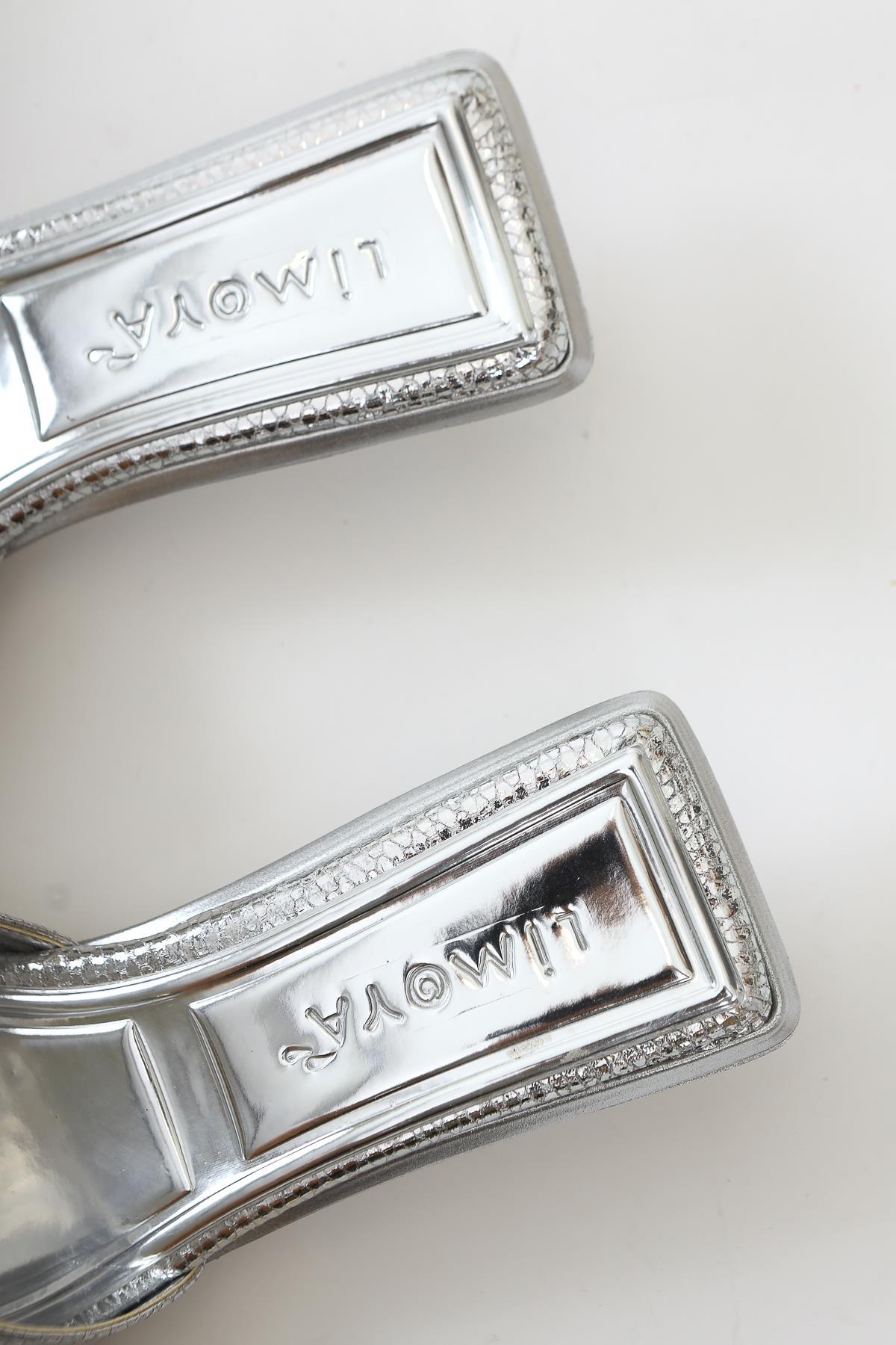 Juvy Parlak Gümüş Yılan Derisi Dokulu Fiyonklu Terlik