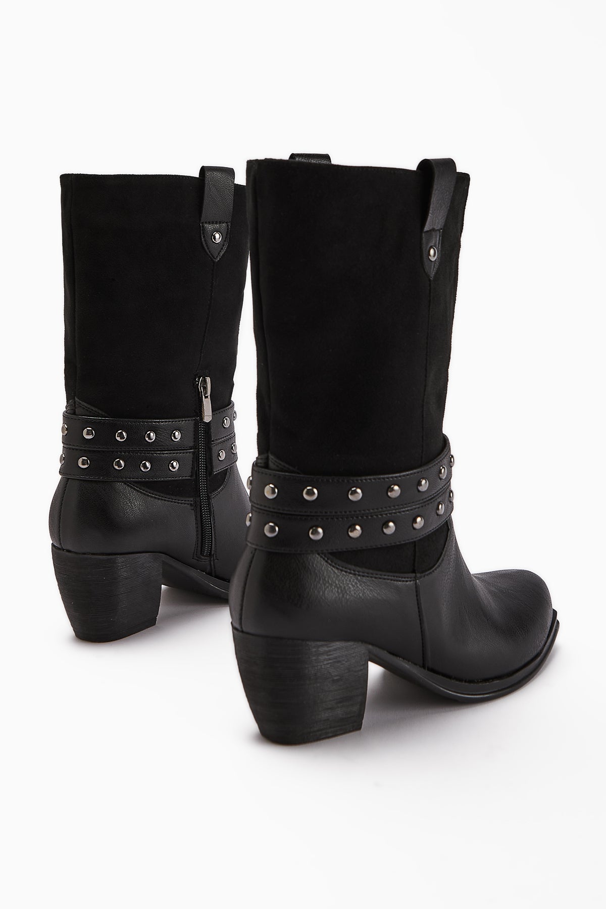 Catrin Siyah Zımba Detaylı Topuklu Kadın Çizme
