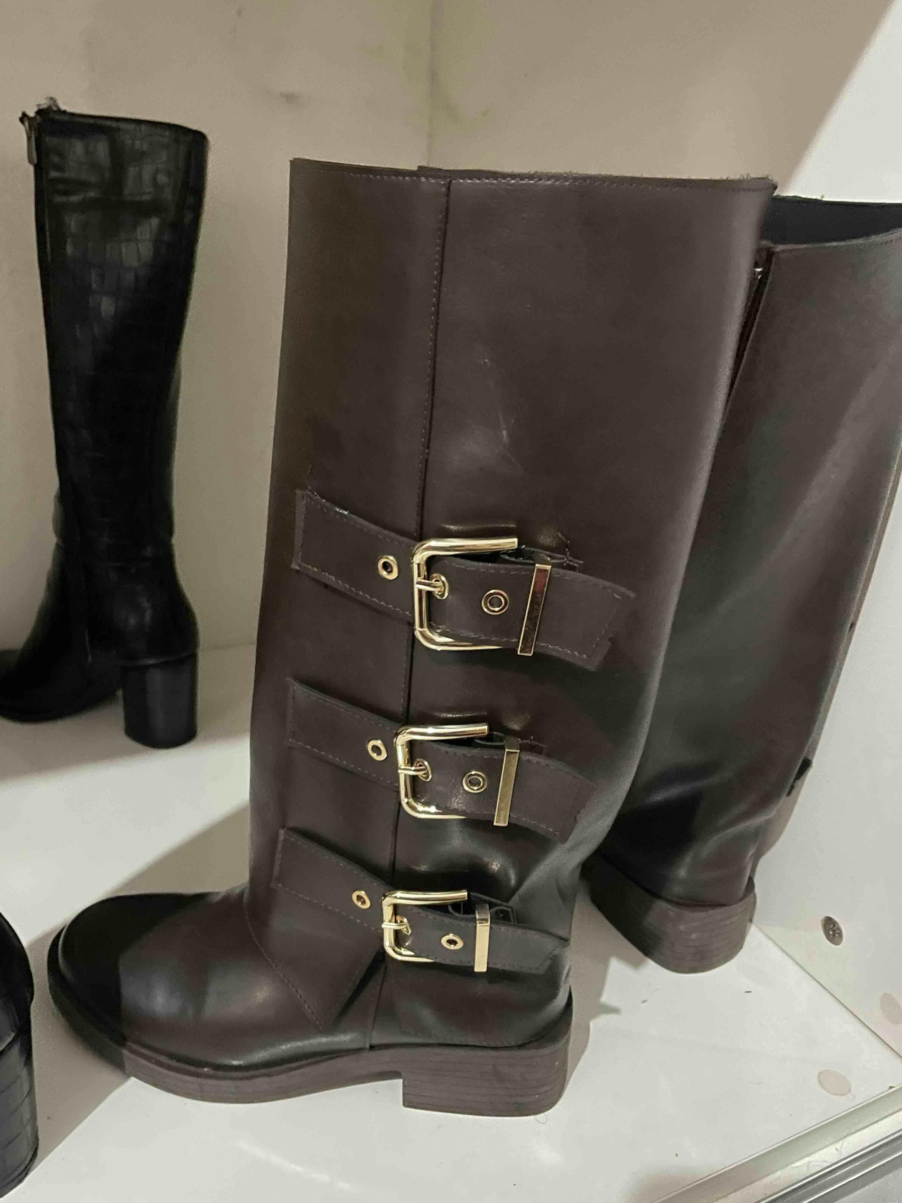 Adelina Kahve Deri Kemerli Kadın Biker Çizme