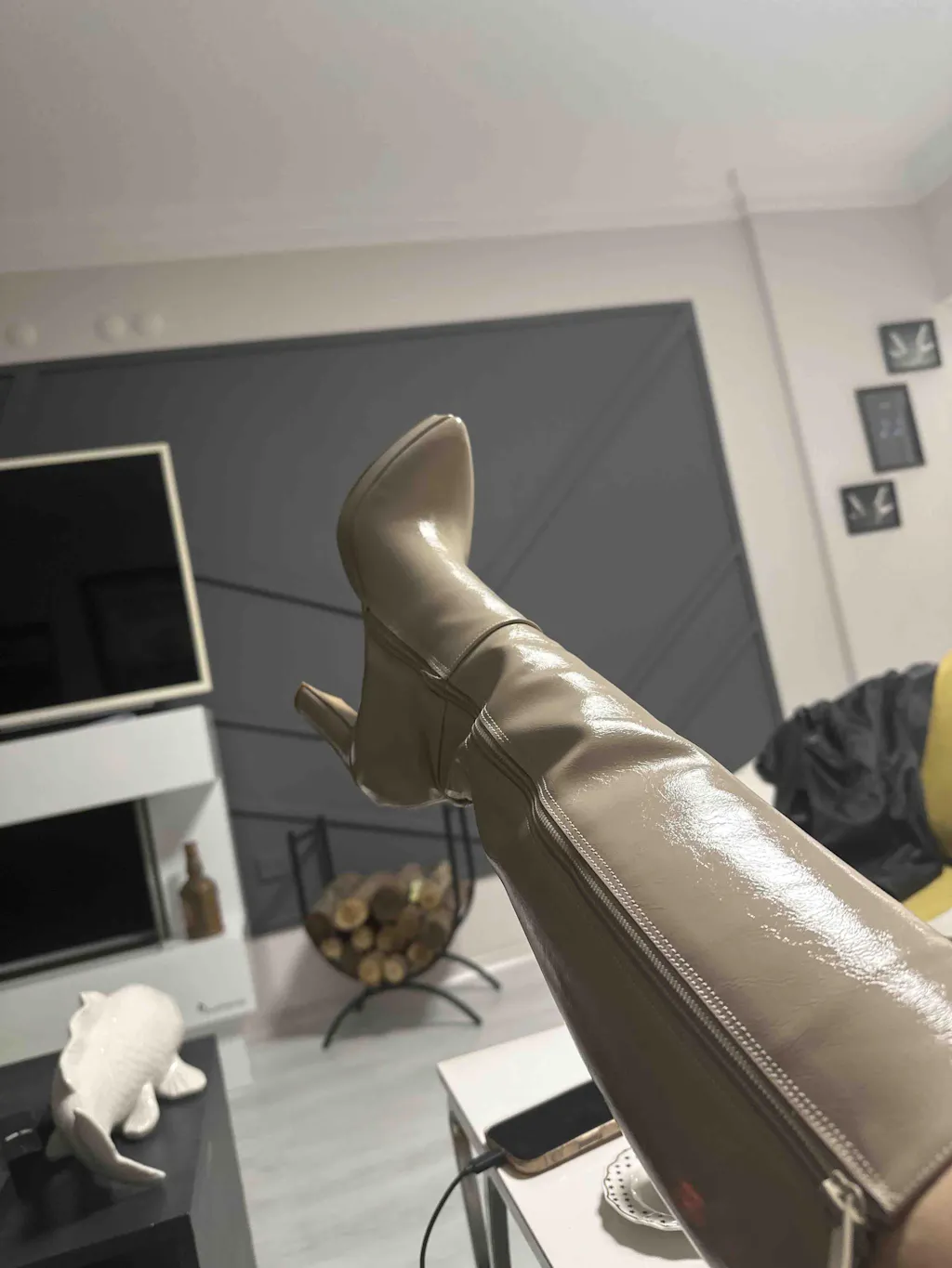 Ariya Bej Platform Topuklu Fermuarlı Kadın Çizme