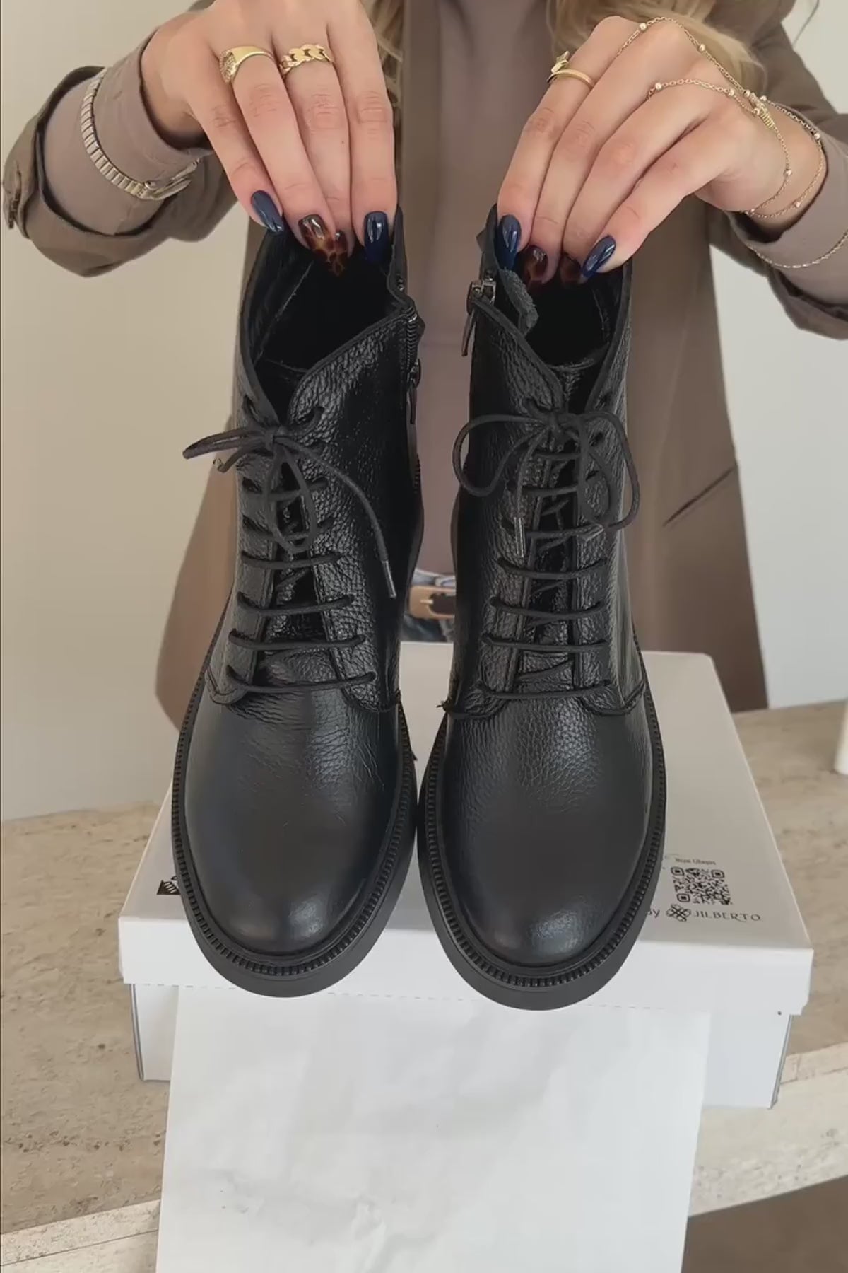 Karol Hakiki Deri Siyah Bağcıklı Kadın Bot