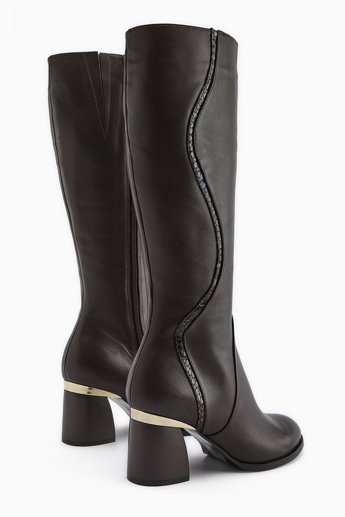 Kaylin Hakiki Deri Kahve Yılan Desenli Detaylı Kadın Topuklu Çizme