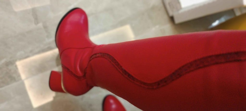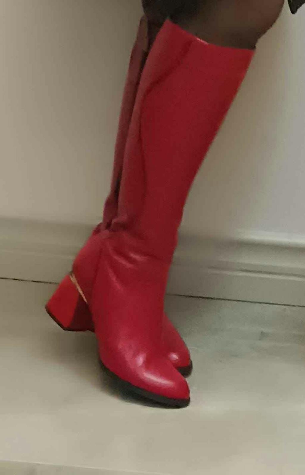 Kaylin Hakiki Deri Kırmızı Yılan Desenli Detaylı Kadın Topuklu Çizme