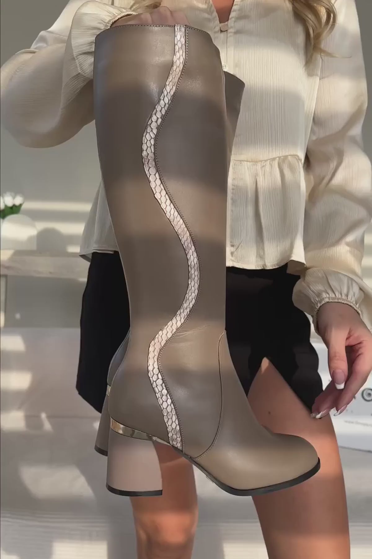 Kaylin Hakiki Deri Vizon Yılan Desenli Detaylı Kadın Topuklu Çizme