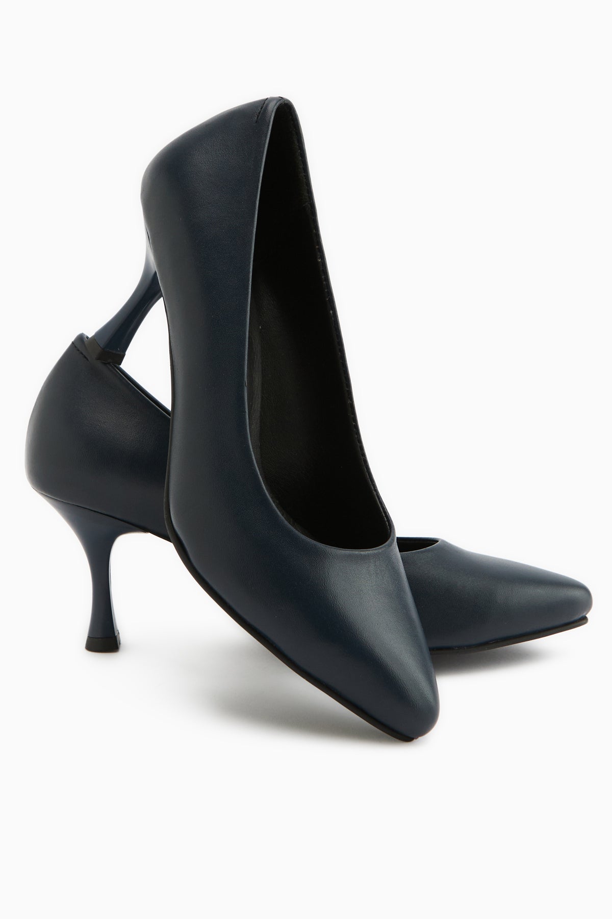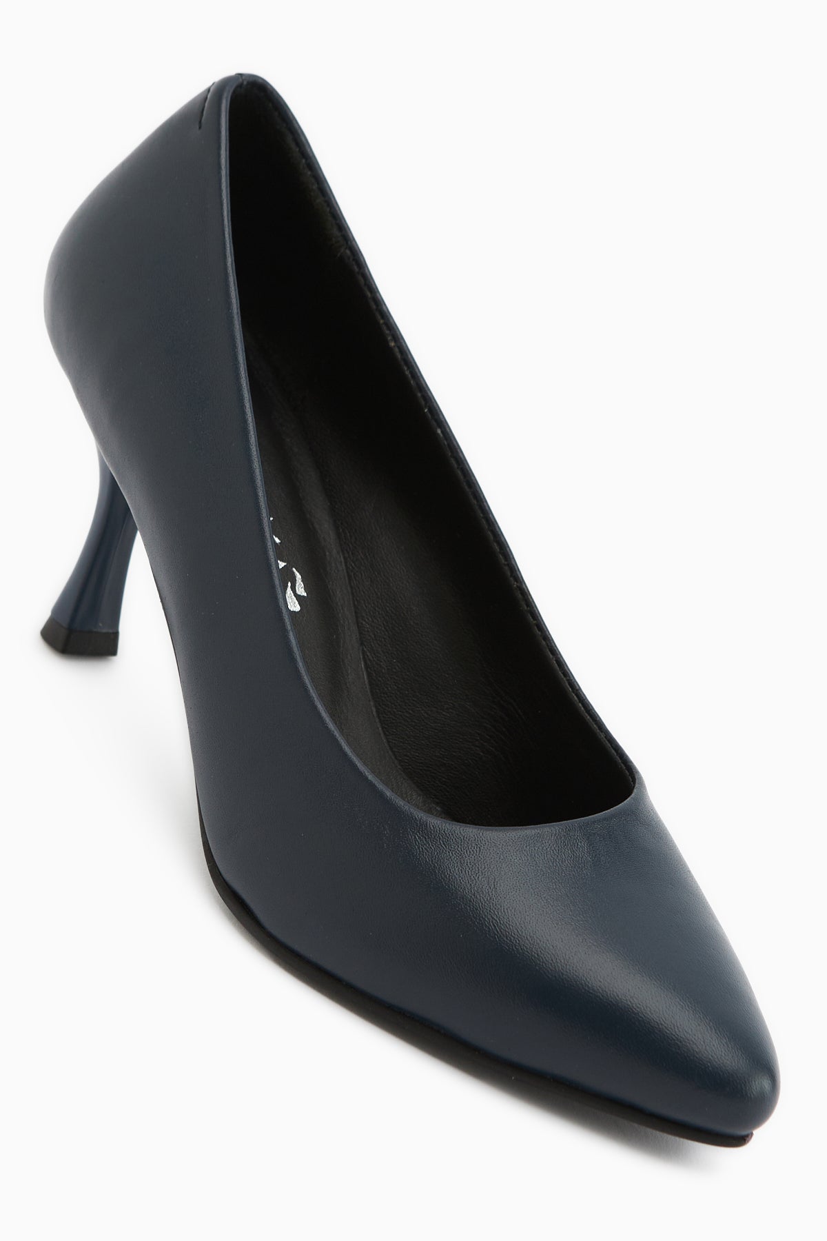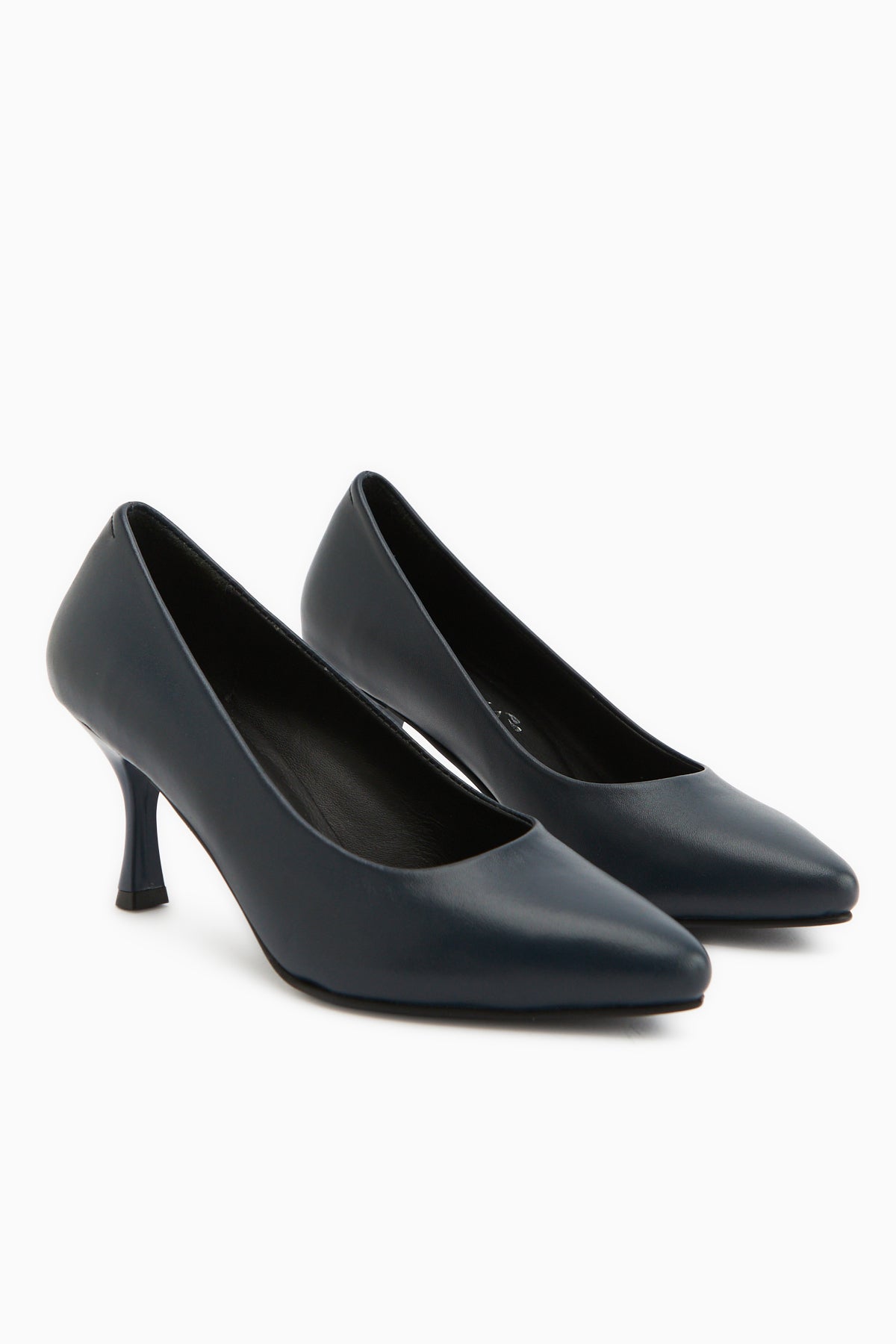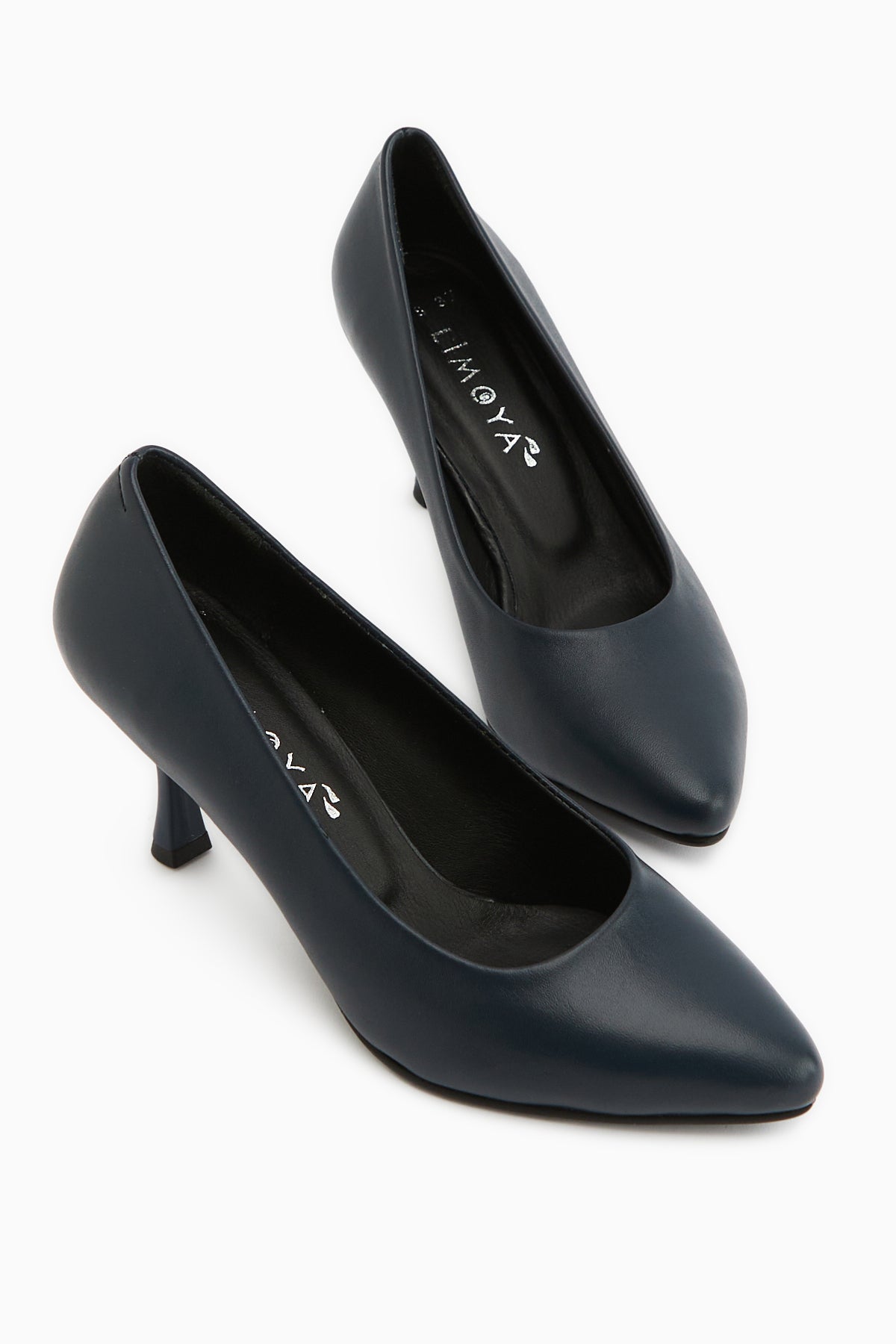 Kiara Hakiki Deri Lacivert Kadın Topuklu Ayakkabı Stiletto