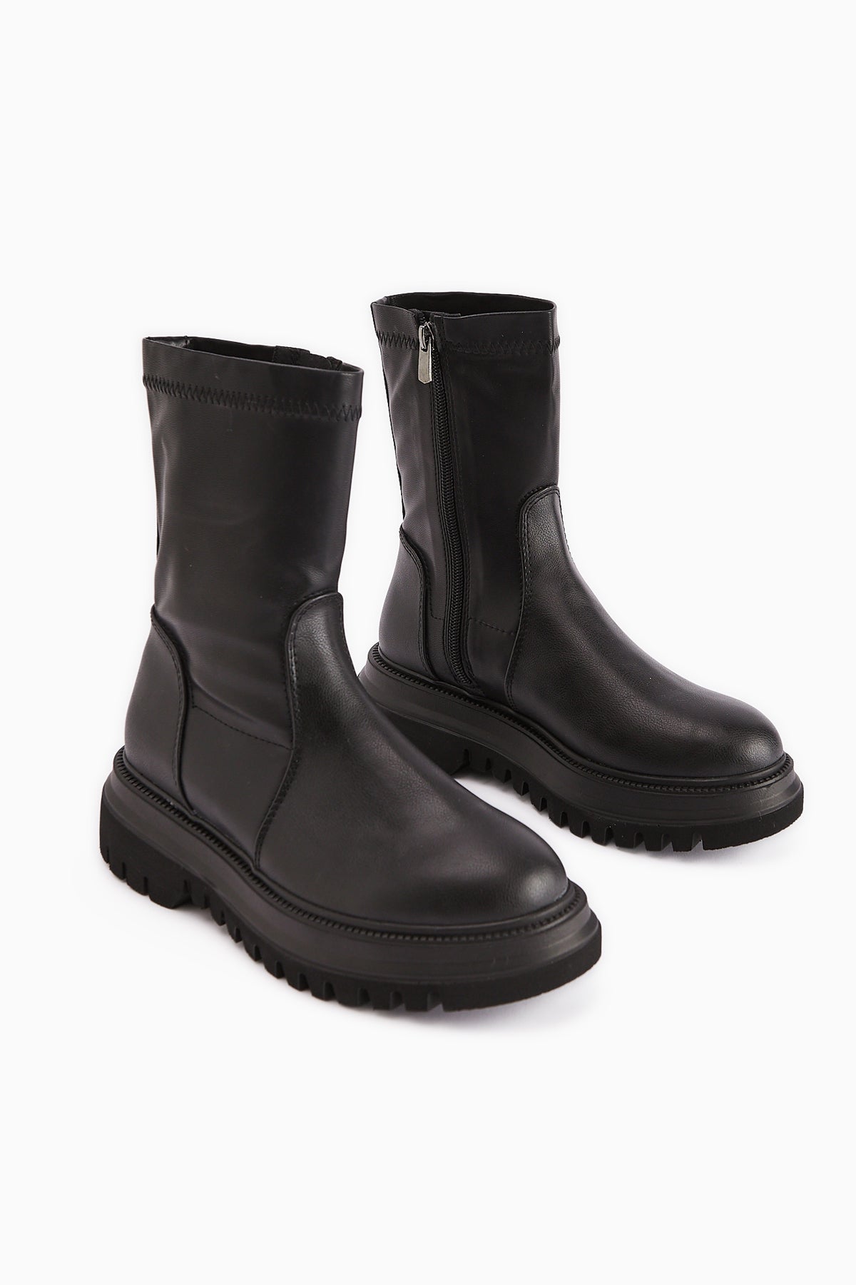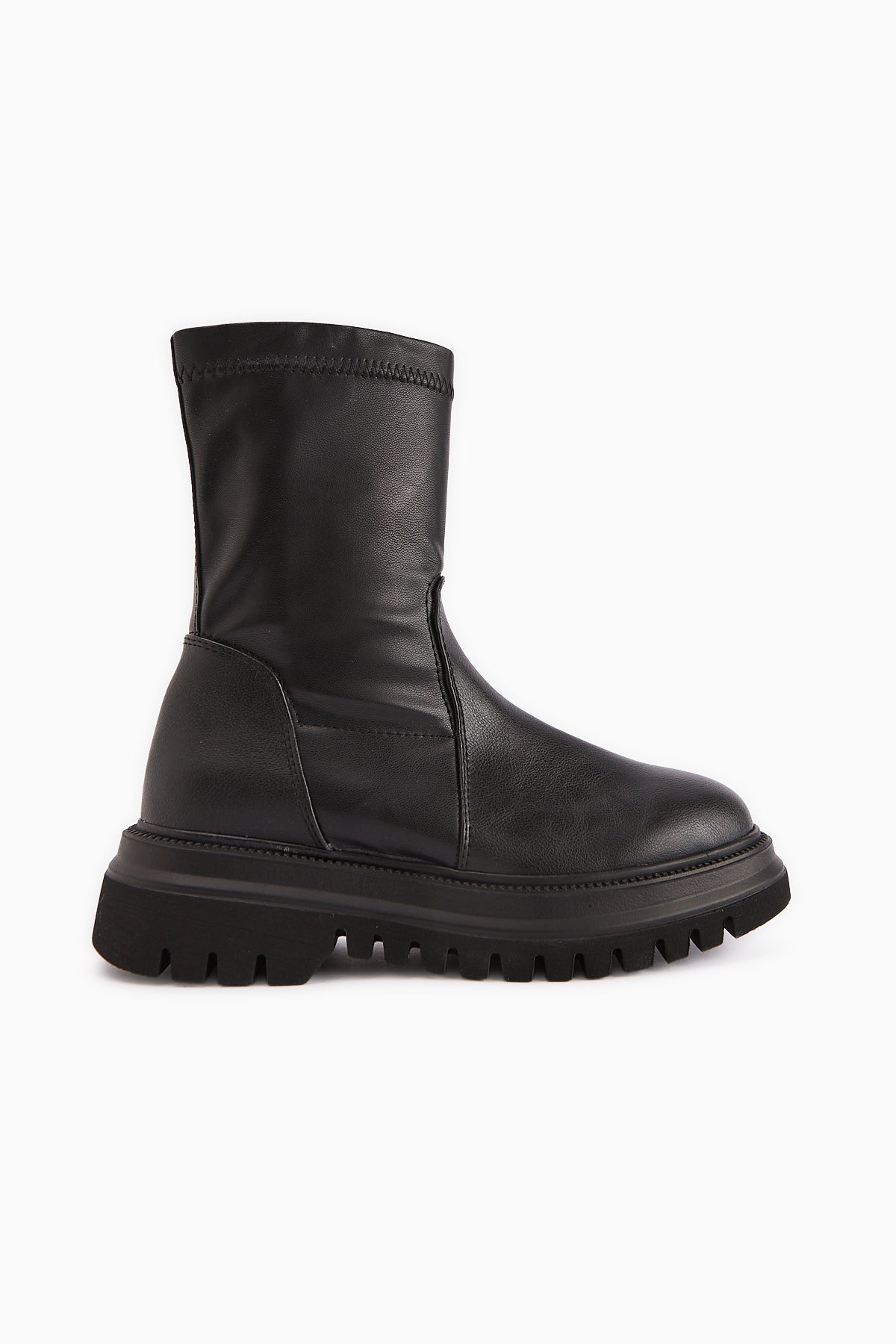 Laimi Siyah Kalın Taban Oval Burun Bot