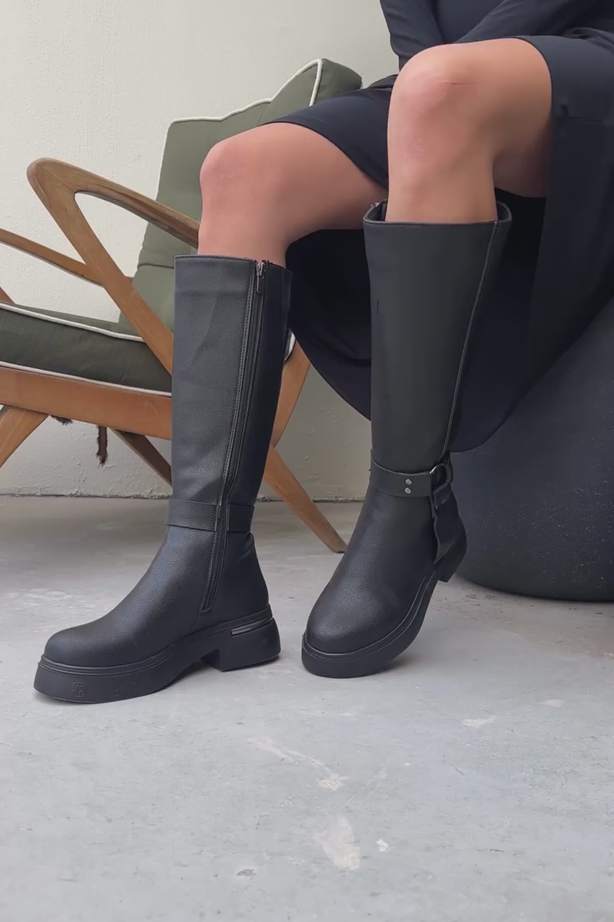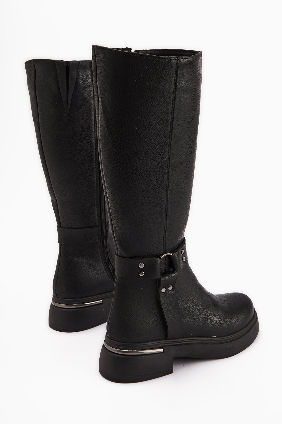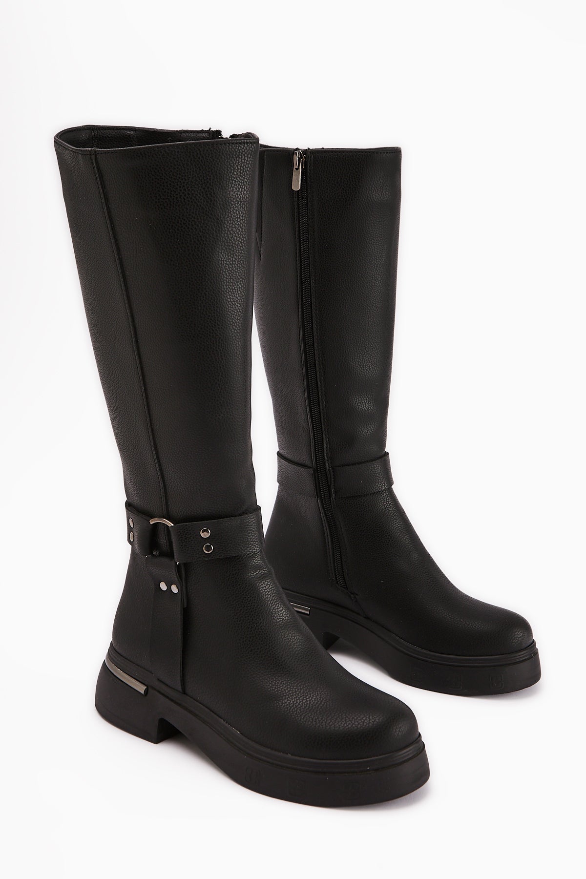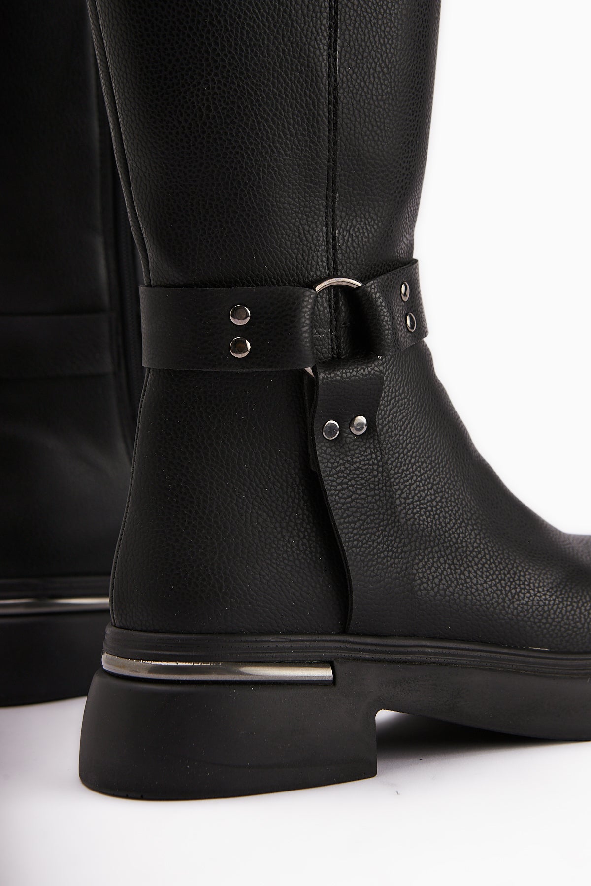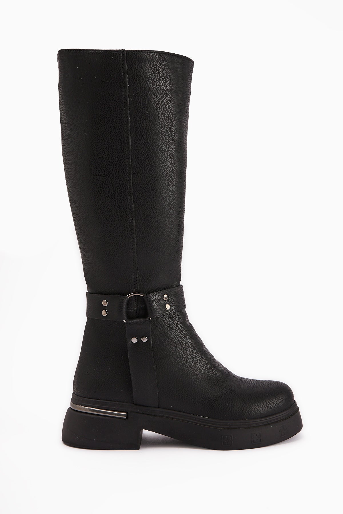Lani Siyah Toka ve Zımba Detaylı Kalın Tabanlı Çizme