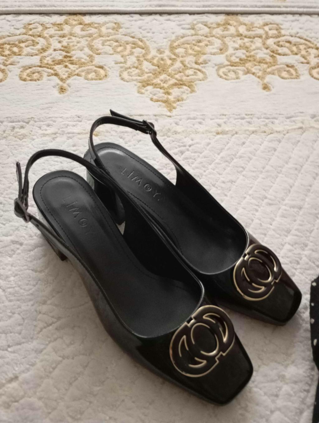 Lania Siyah Küt Burunlu Toka Detaylı Kısa Topuklu Kadın Günlük Ayakkabı