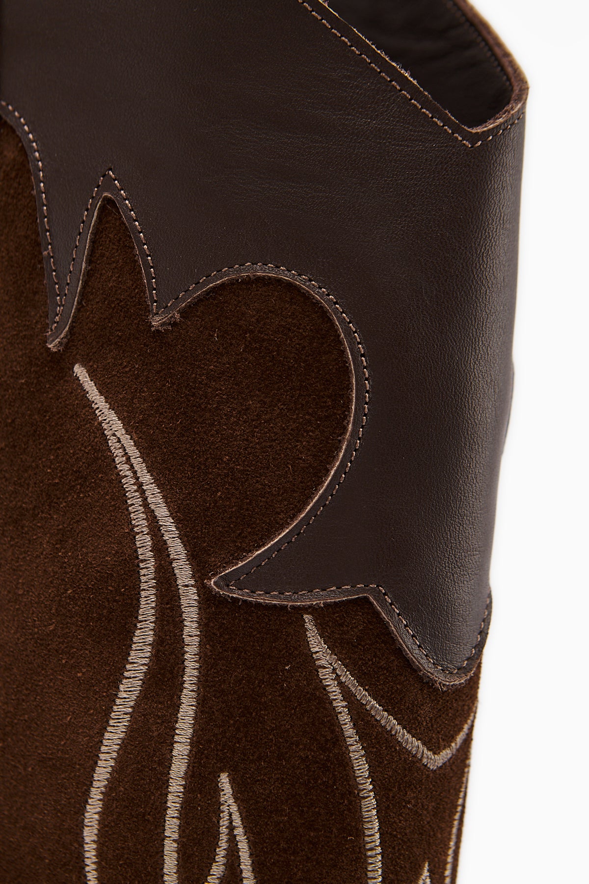 Lara Hakiki Deri Kahve Süet Nakışlı Deri Detaylı Topuklu Western Çizme