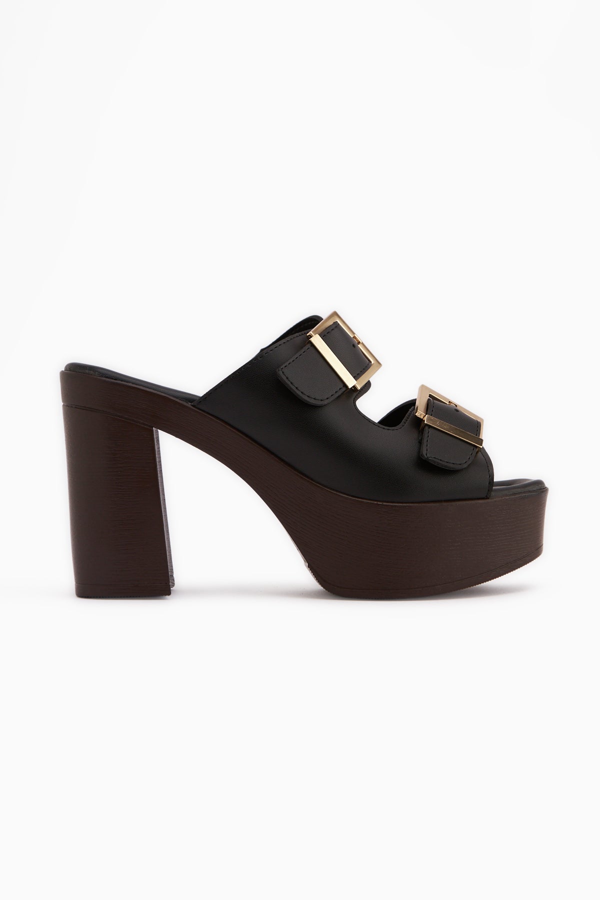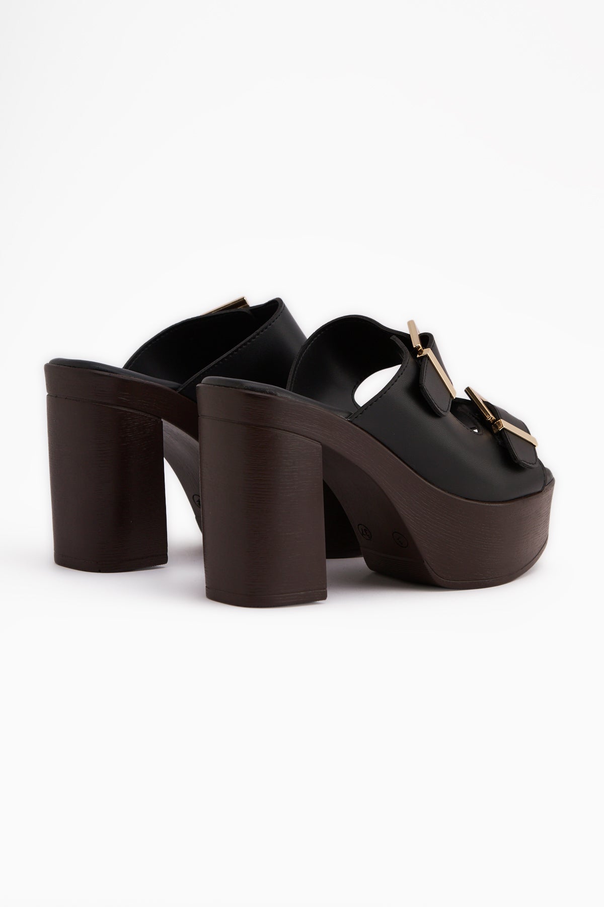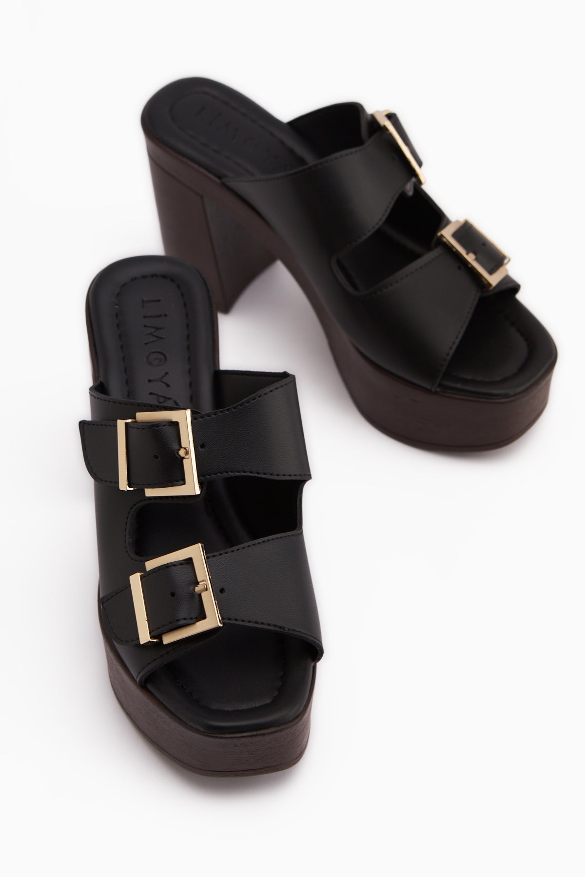 Leida Siyah Tokalı Platform Topuklu Kadın Terlik