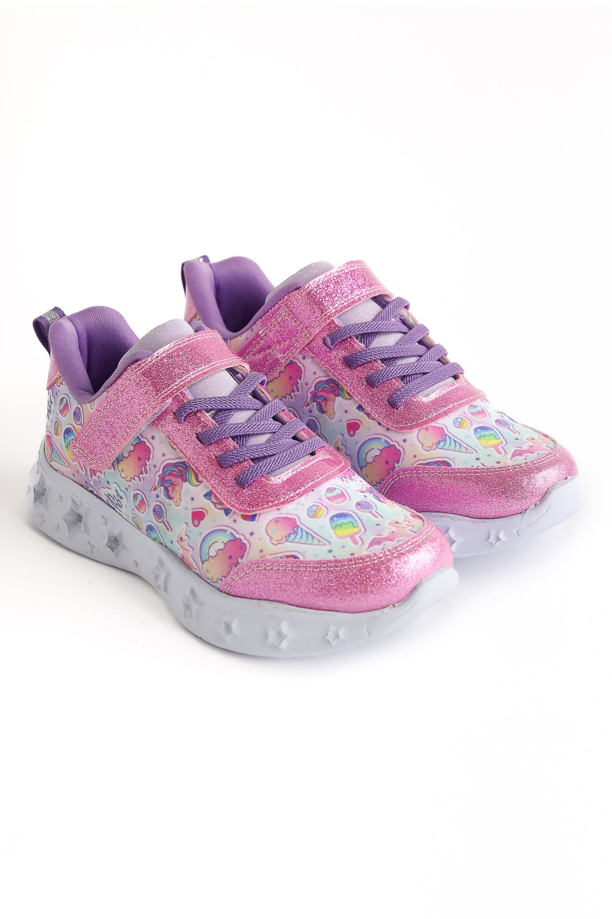 Leika Pembe Çizgi Karakter Baskılı Simli Işıklı Çocuk Spor Ayakkabı