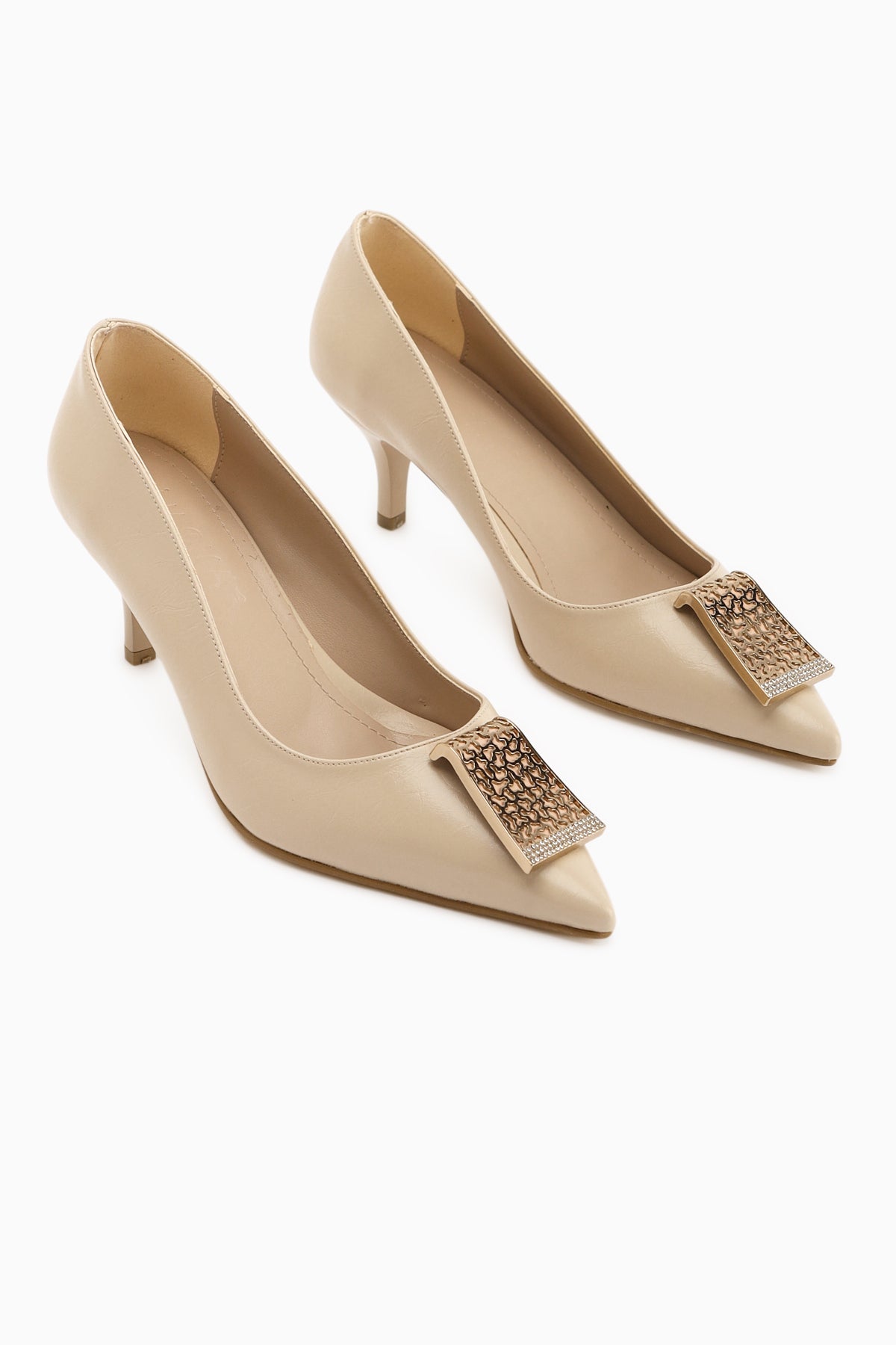 Lian Bej Tokalı Stiletto Kadın Topuklu Ayakkabı