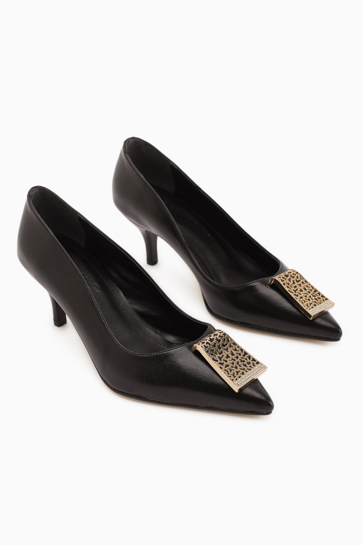 Lian Siyah Tokalı Stiletto Kadın Topuklu Ayakkabı