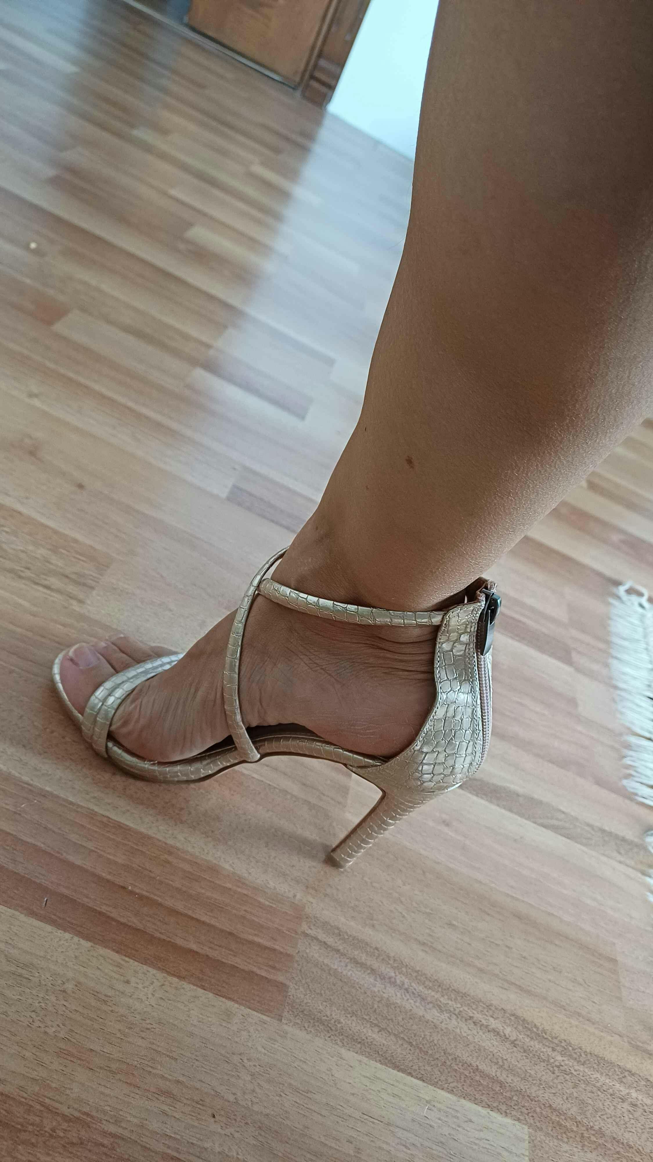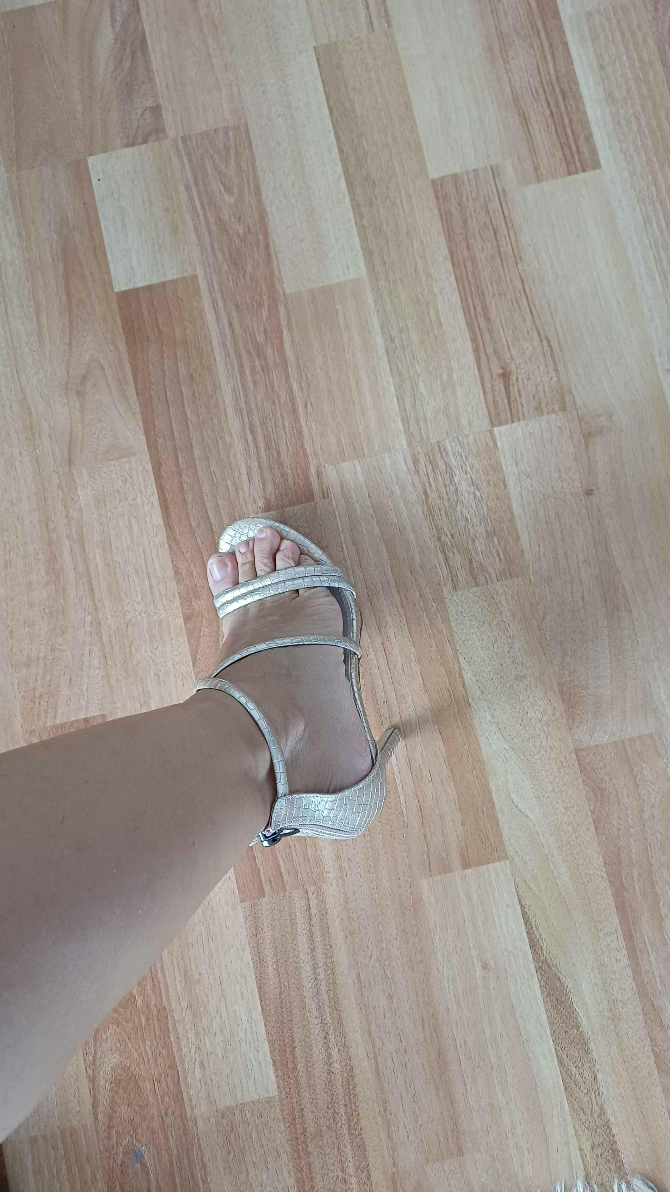 Liane Altın Dokulu Deri Baskı Çapraz Bantlı İnce Topuklu kadın Ayakkabı