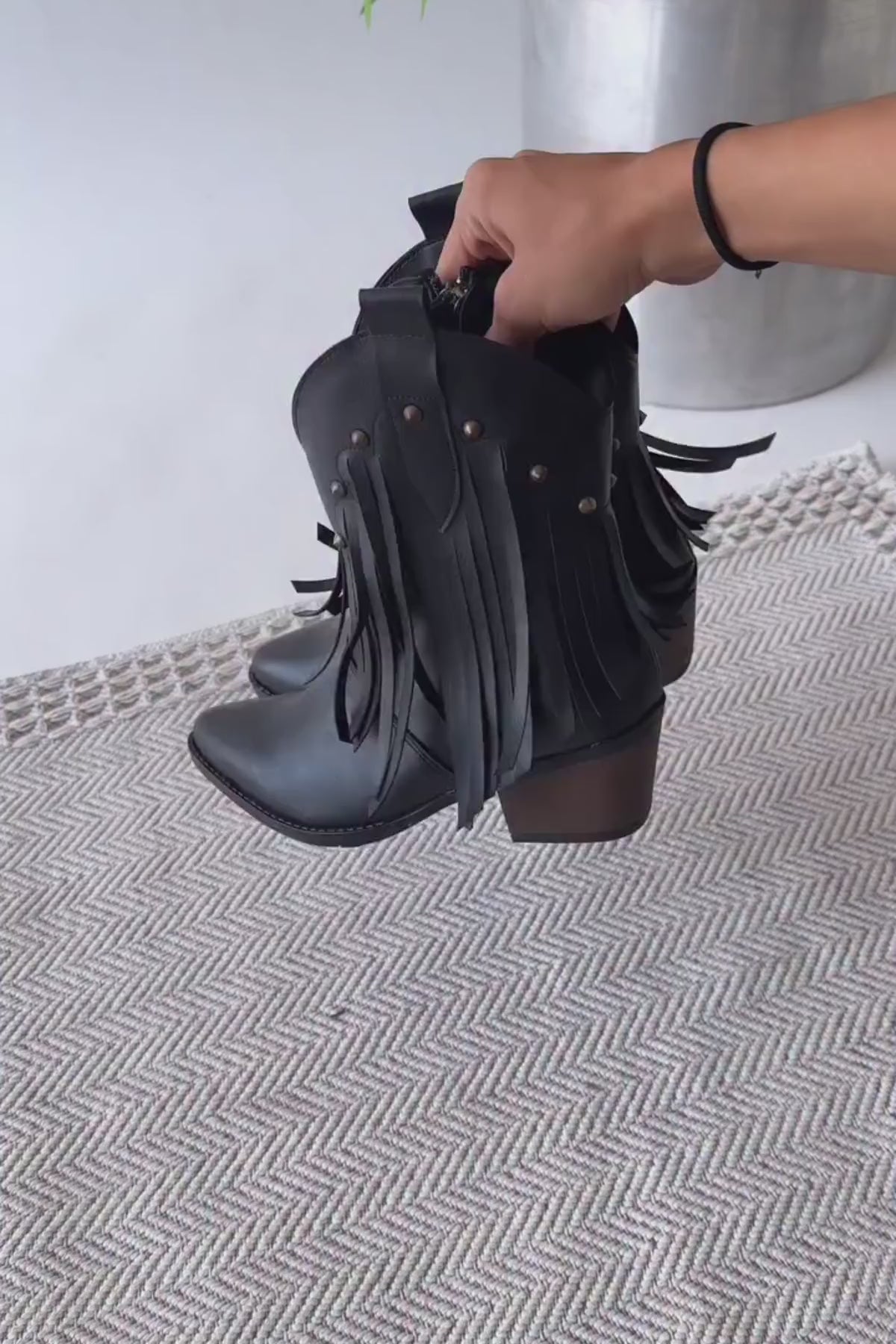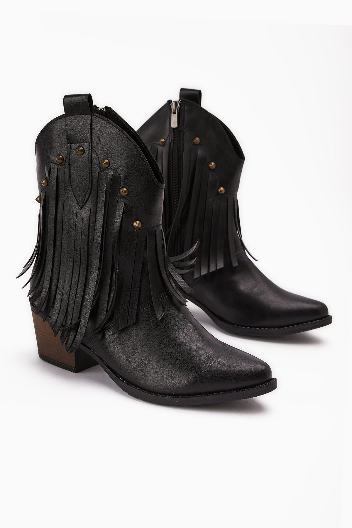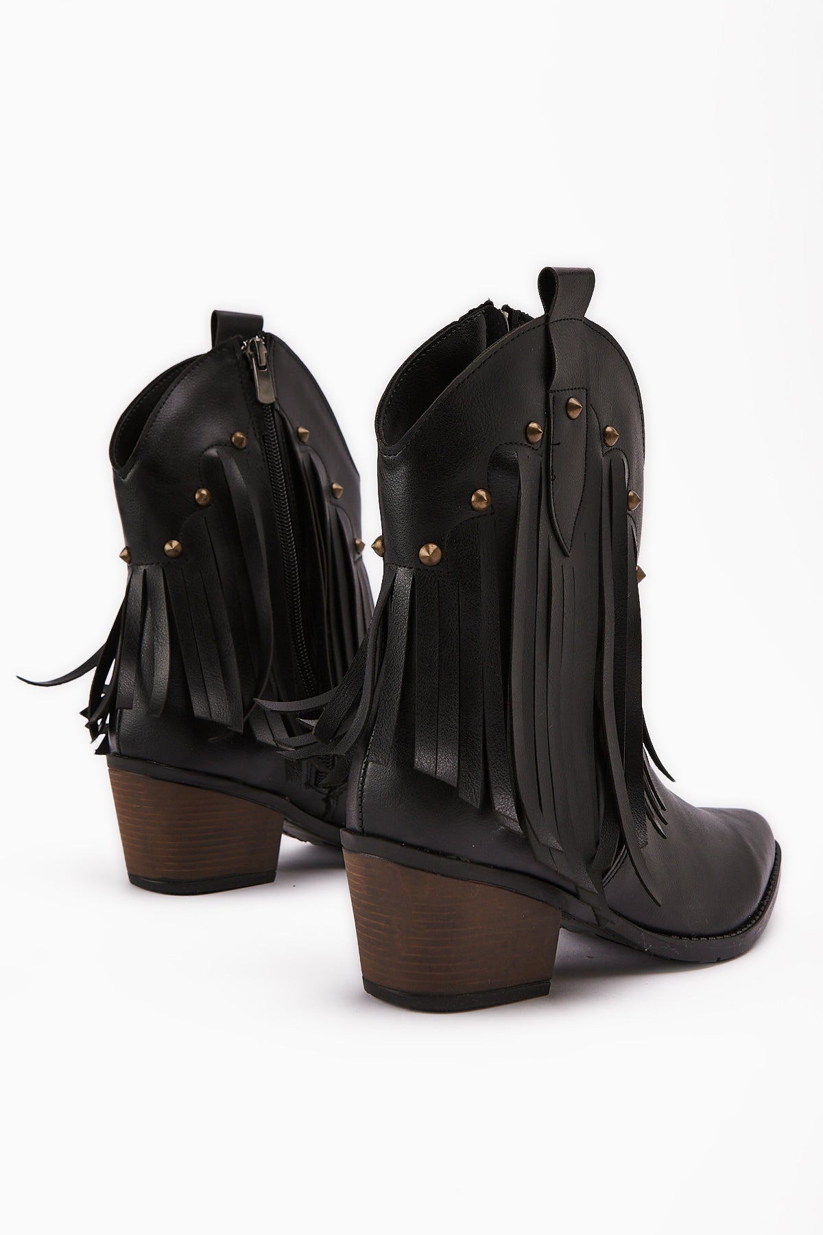Lillebeth Siyah Püsküllü Zımba Detaylı Western Bot