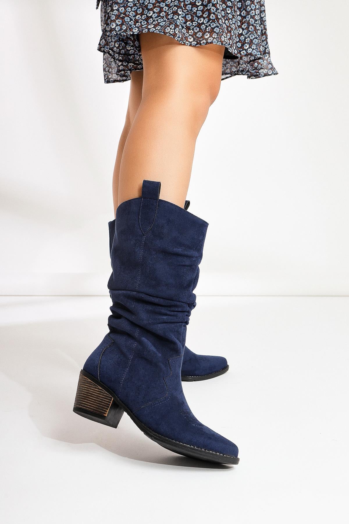 Lise-Britt Lacivert Süet Körüklü Nakışlı Western Bot