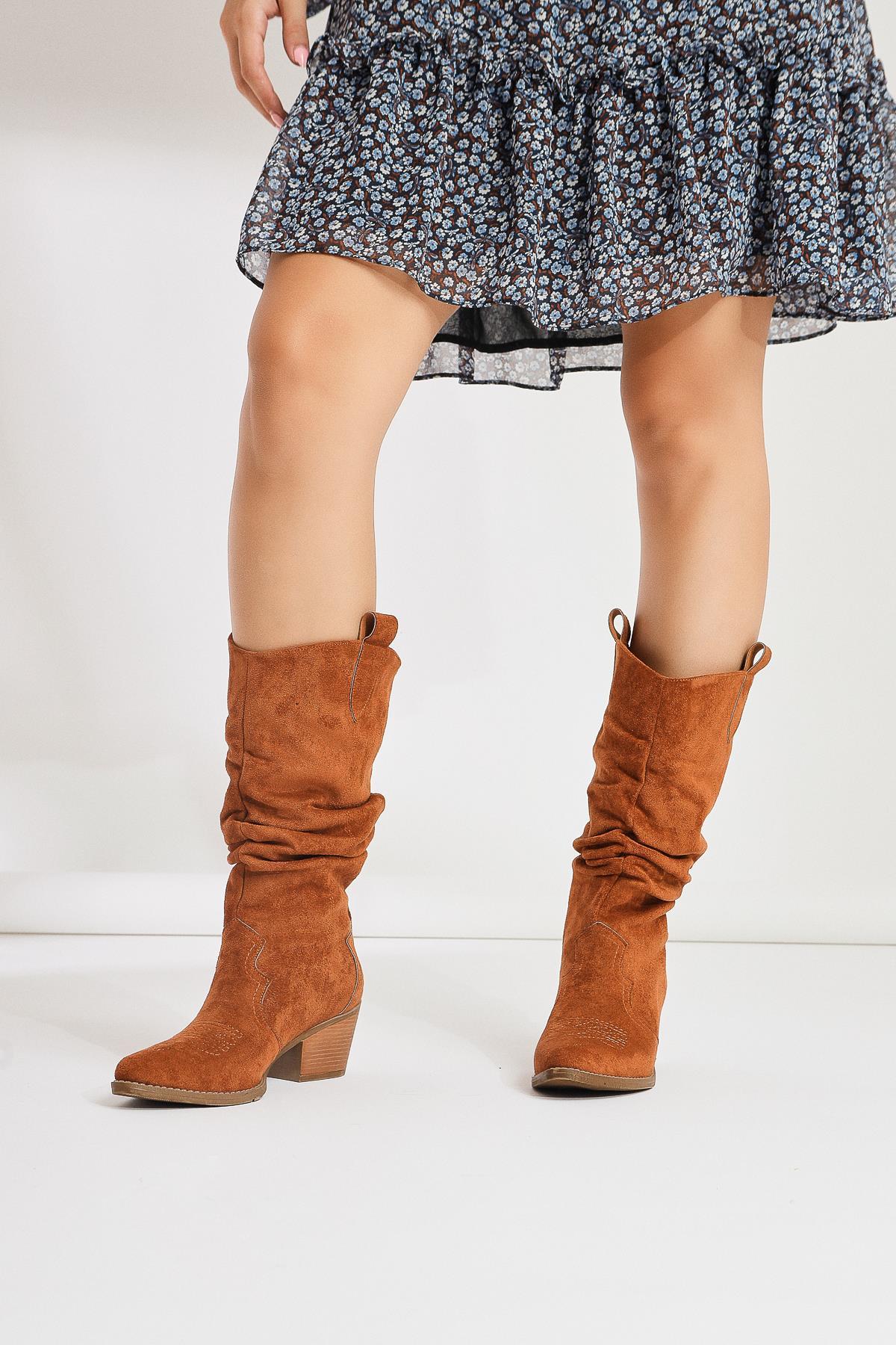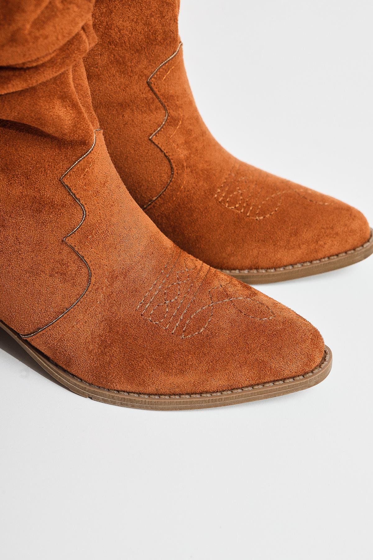 Lise-Britt Taba Süet Körüklü Nakışlı Western Bot